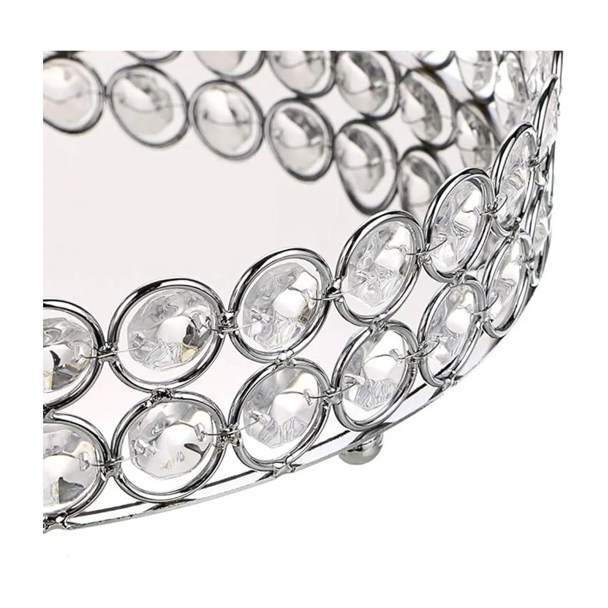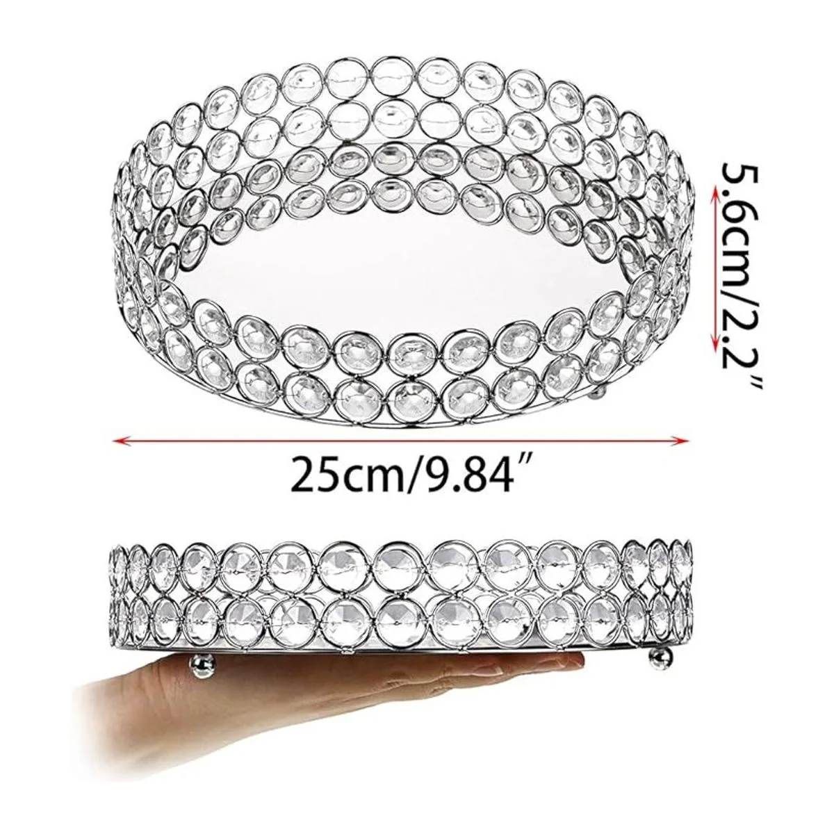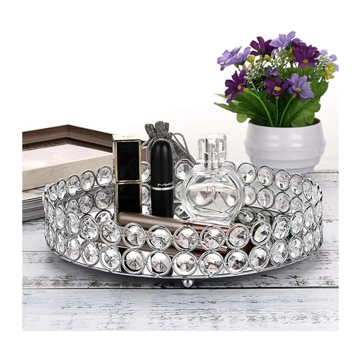 Exquisita bandeja de cristal: esta bandeja de maquillaje está hecha de cristales brillantes intrincadamente tejidos en anillos de metal alrededor de una hermosa base de espejo. El cristal brillante de dos capas hecho a mano se ve hermoso, la bandeja de superficie de vidrio con espejo con impresionante base hace que sea más única