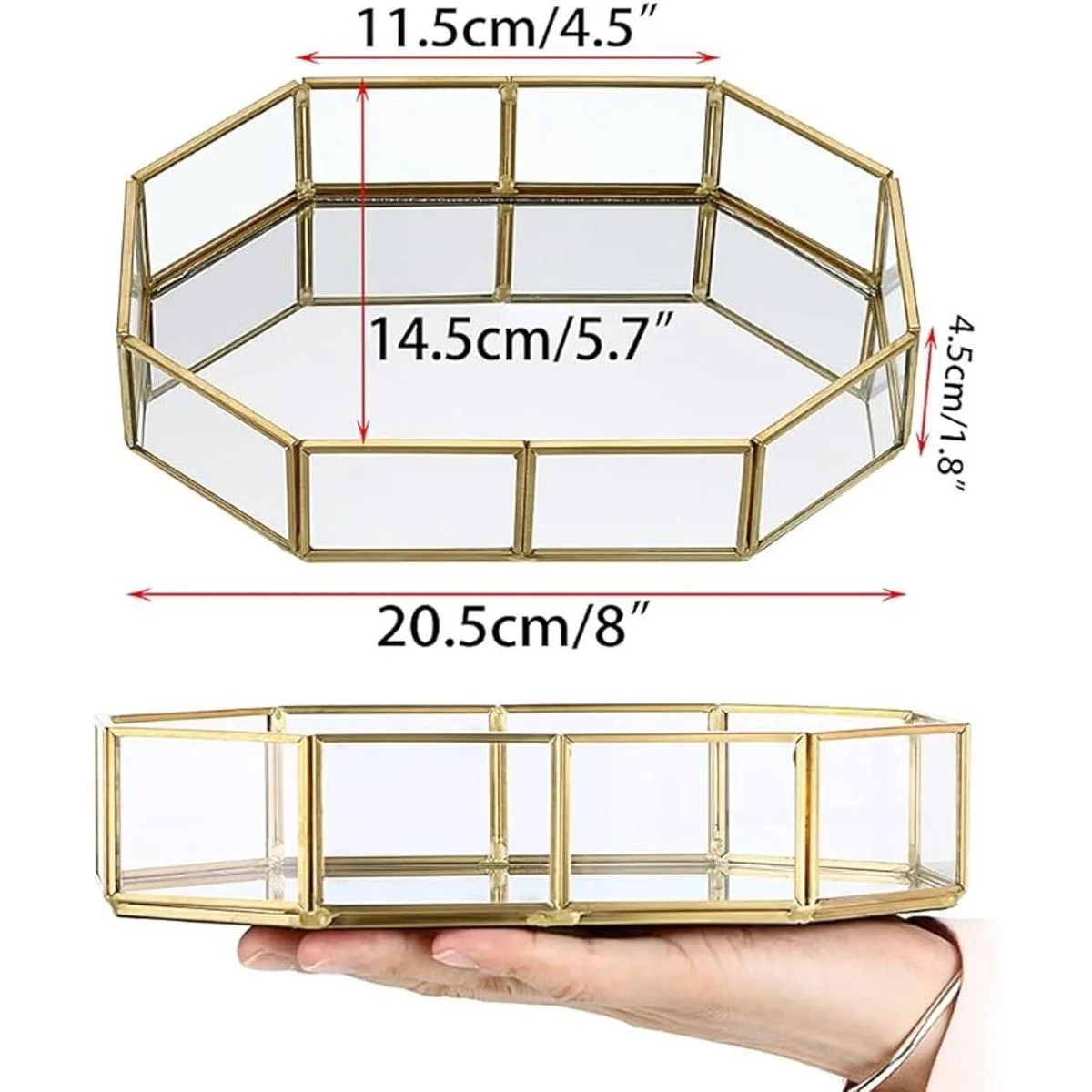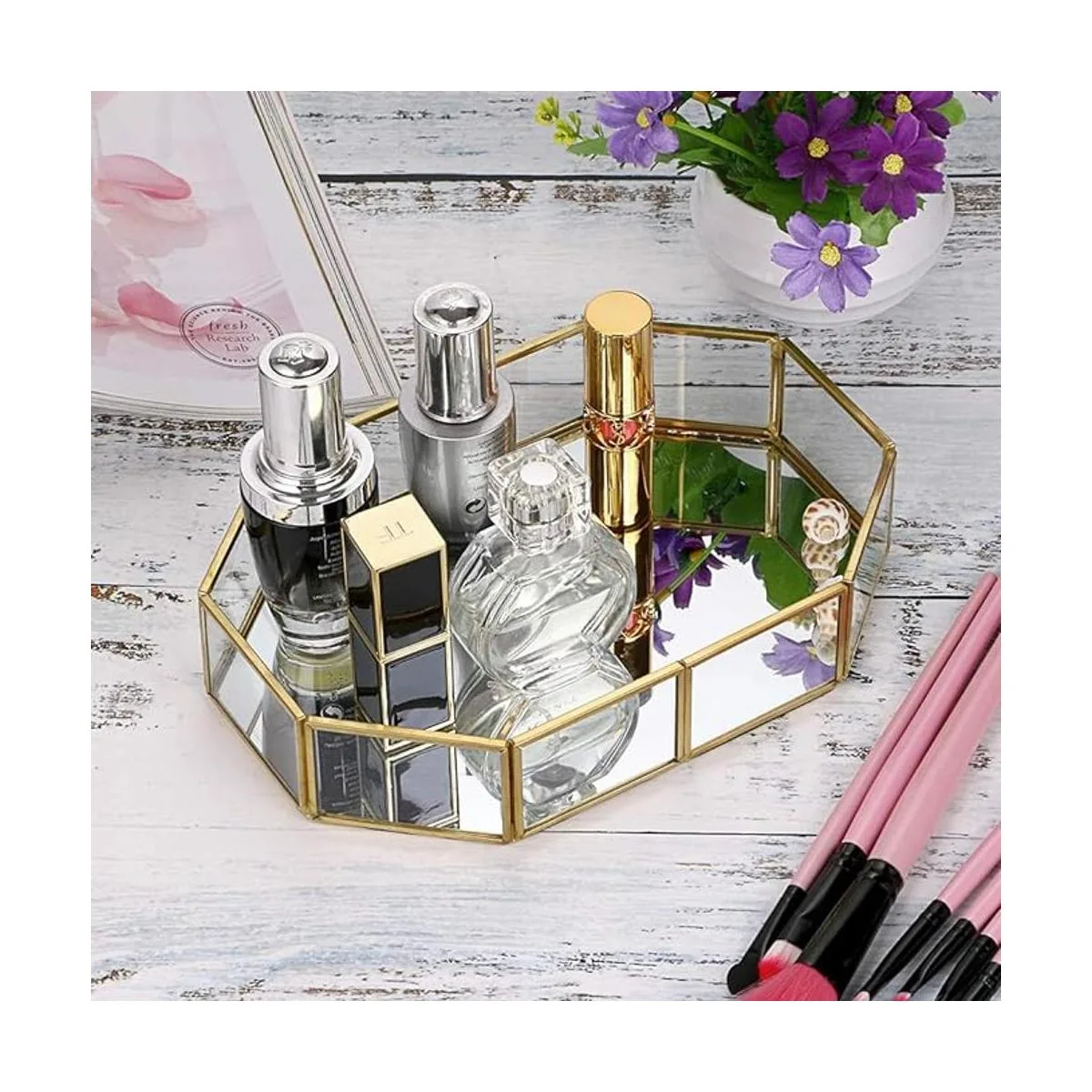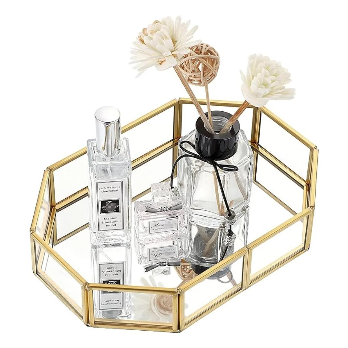 Hipiwe Bandeja de tocador de cristal para espejo, bandeja de maquillaje octogonal vintage para perfumes, bandeja organizadora de joyas para baño, bandeja de almacenamiento para decoración del hogar
