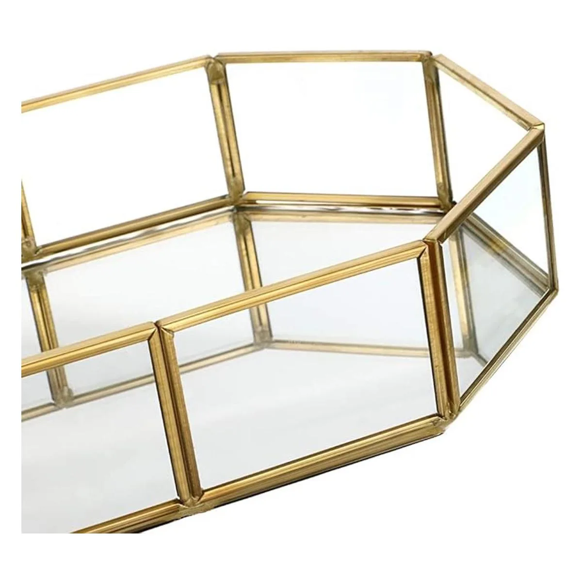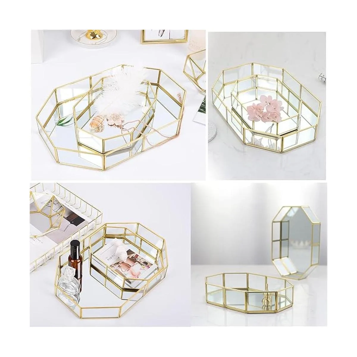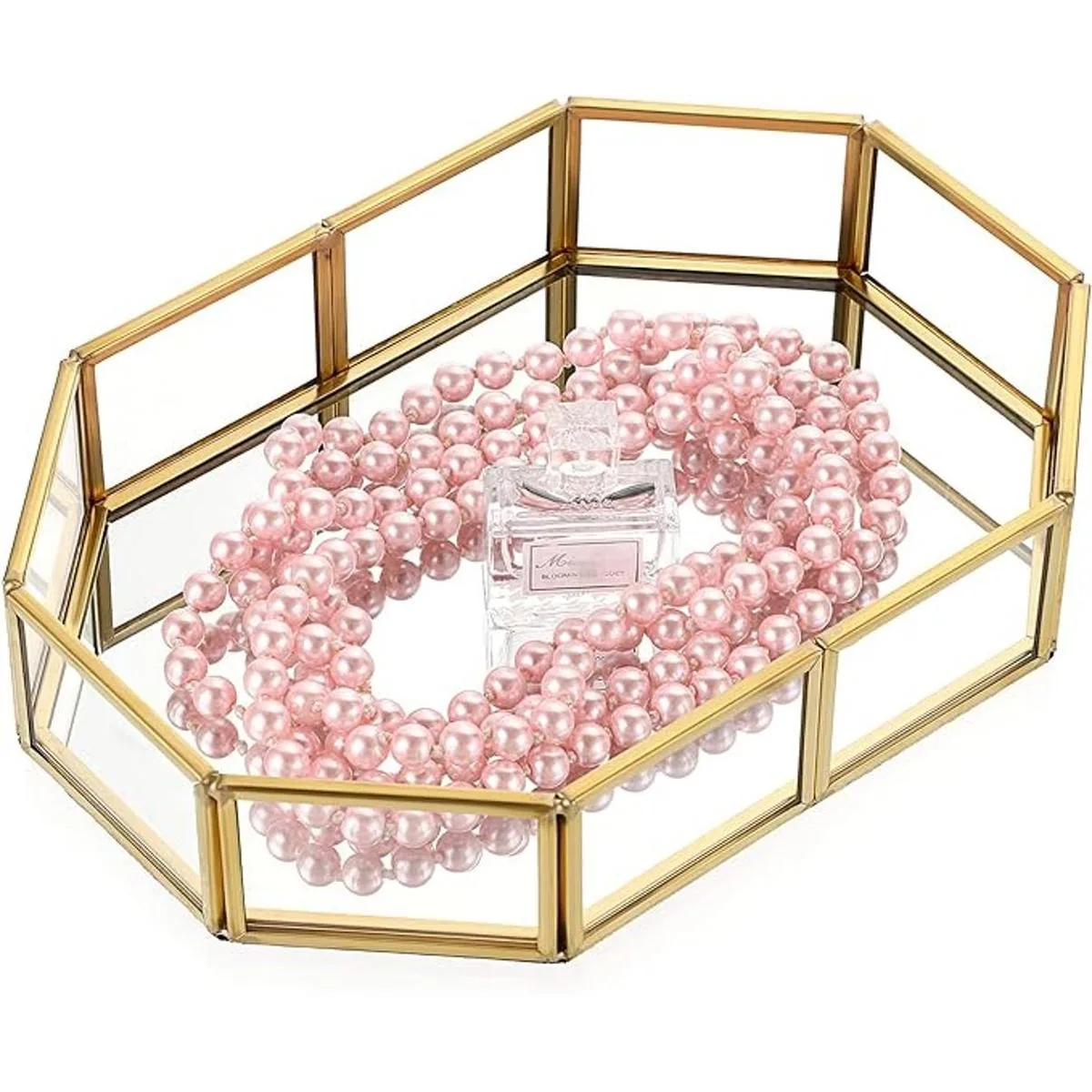 Hipiwe Bandeja de tocador de cristal para espejo, bandeja de maquillaje octogonal vintage para perfumes, bandeja organizadora de joyas para baño, bandeja de almacenamiento para decoración del hogar