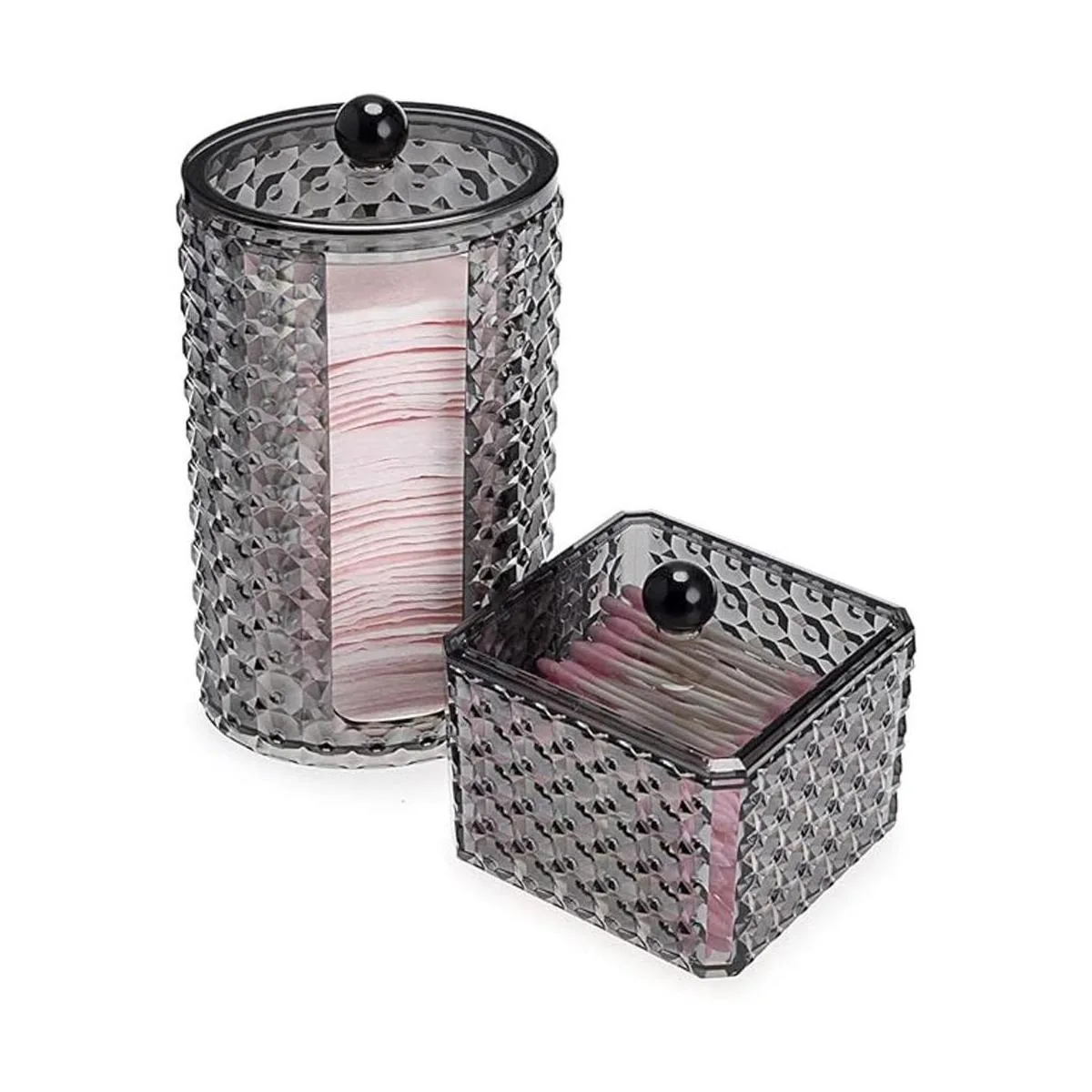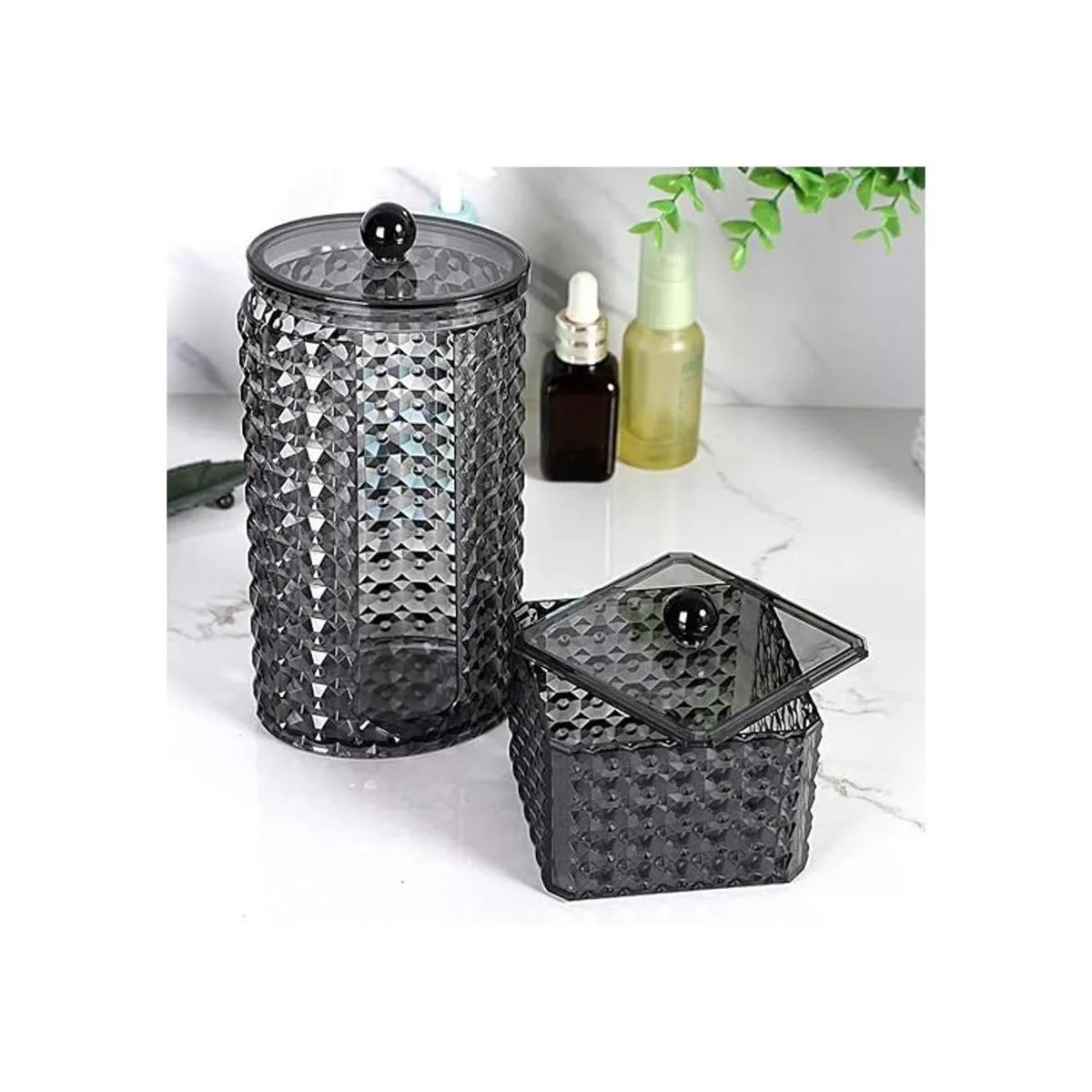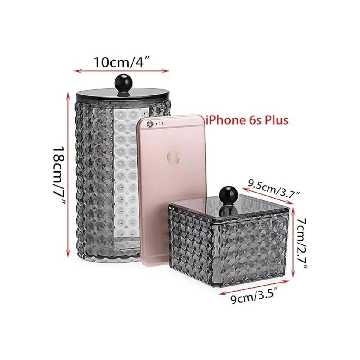 Juego de 2 y gran capacidad: uno es redondo, uno es cuadrado, construido bien con un montón de almacenamiento que puede contener más de 100 puntas Q y más de 100 algodón redondo