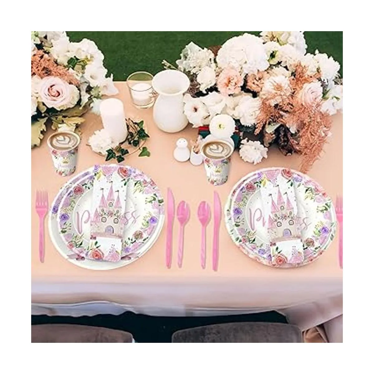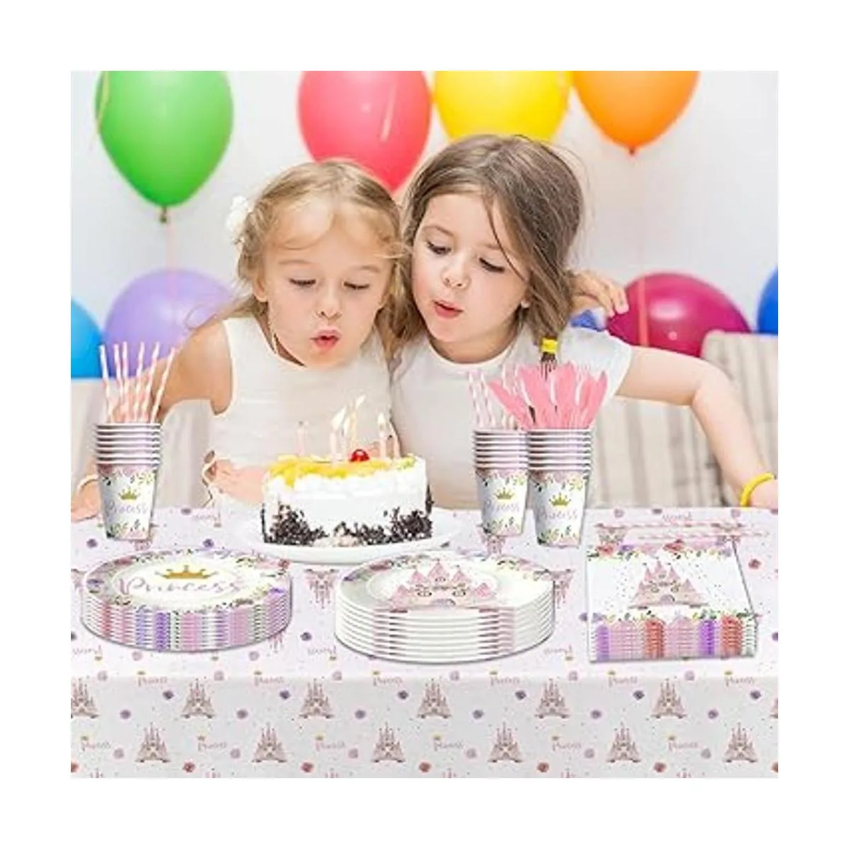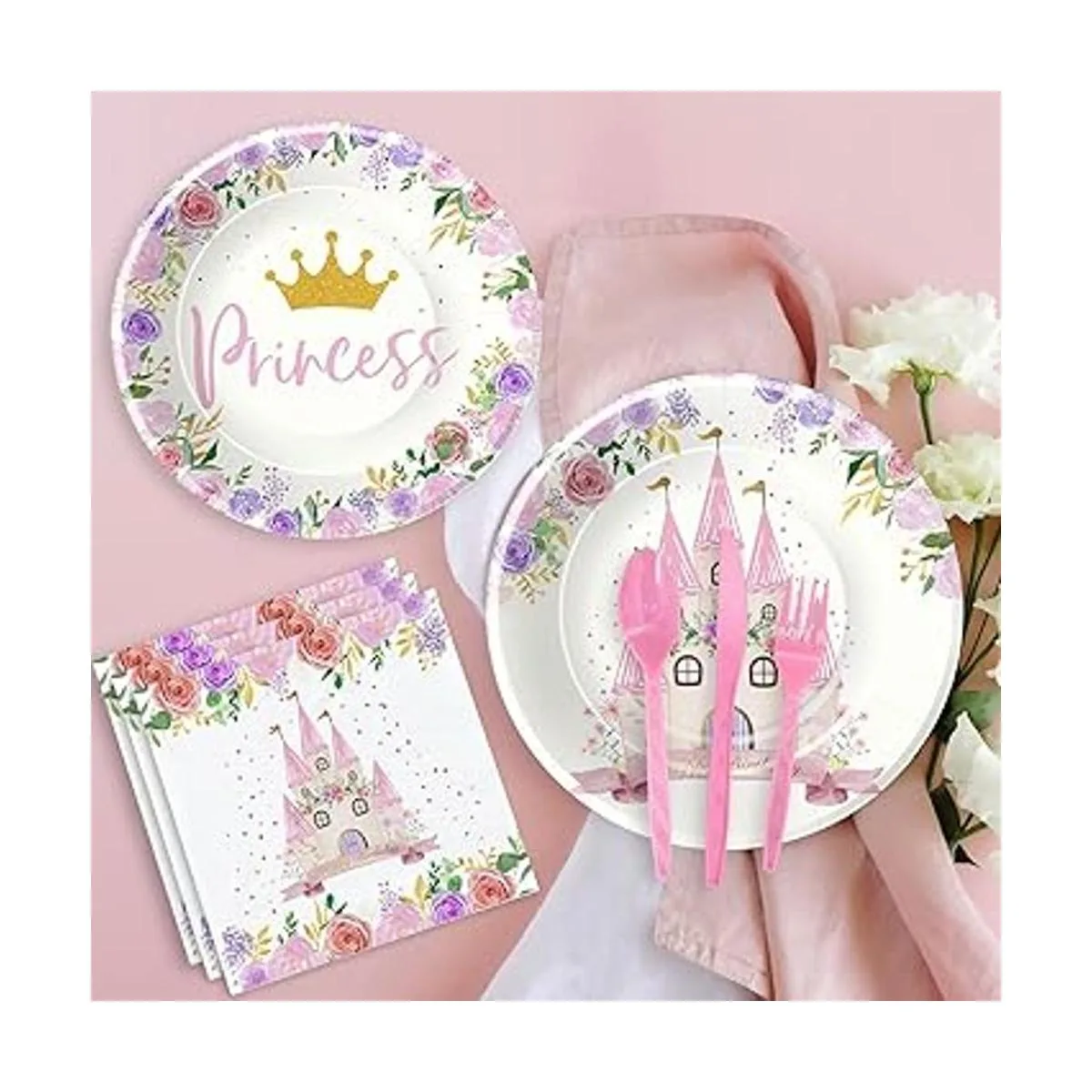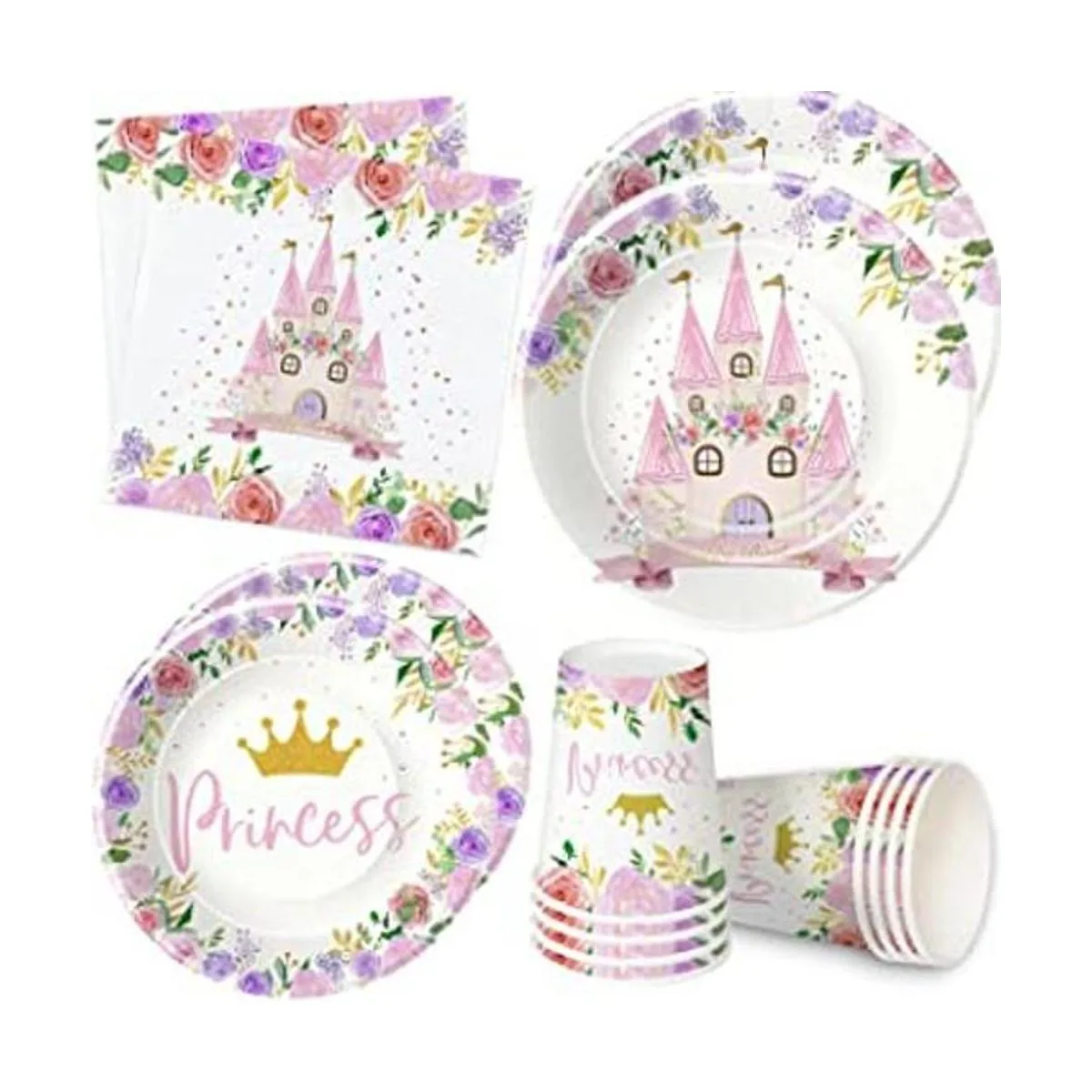 Ocasiones aplicables Nuestro juego de vajilla de decoración de fiesta de cumpleaños de princesa es perfecto para fiestas de cumpleaños de niñas, decoraciones de baby shower de princesa, primer cumpleaños de princesa, reuniones familiares, fiestas de padres e hijos, buffets, cenas, reuniones de amigos y reuniones familiares