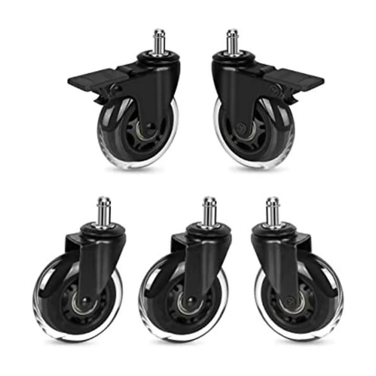 Hirate Juego de 5 ruedas para silla de oficina 2 con frenos, 3 sin salida, 3.0 in con cerradura para ruedas giratorias para alfombras de piso de madera dura