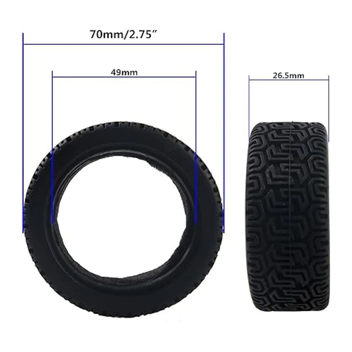 2. Información de tamaño: diámetro exterior del neumático: 2.756 in, ancho del neumático: 1.043 in. Diámetro del orificio del eje: 0.157 in.