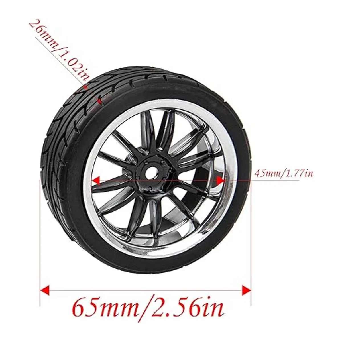 1. Comprueba el tamaño antes de comprar. Nota: con espuma insertada, y los neumáticos no están prepegados en las llantas, necesitas pegarlos juntos antes de ejecutarlos. Solo para vehículos de carretera a escala 1/10, no es compatible con vehículos RC de camión todoterreno o estilo rally de 1/10, también es compatible con modelos de escala 1/14 1/16 1/18 si tienes el adaptador de 0.472 in.