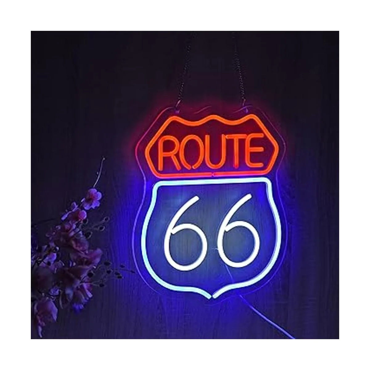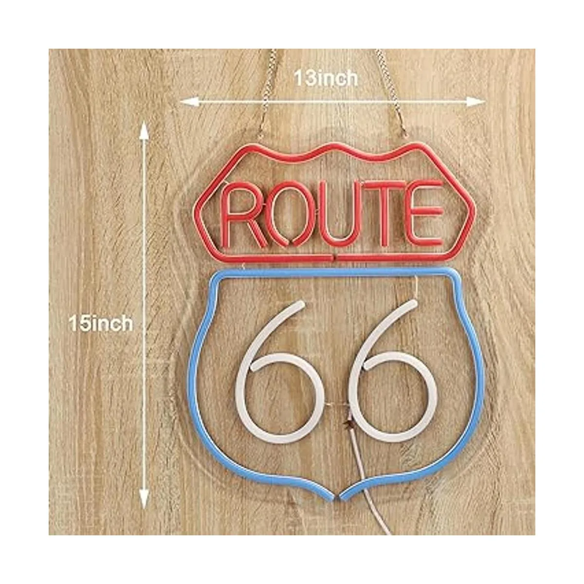 El letrero de neón Route 66 mide 15.0 x 13.0 in. Longitud del cable USB: 5.9 ft.