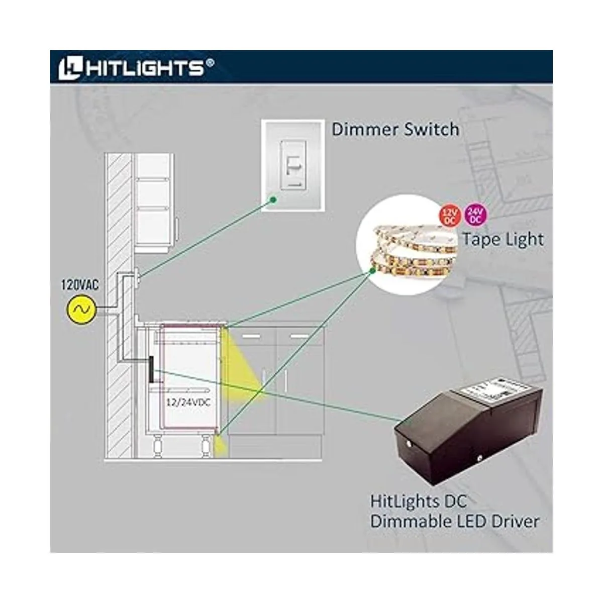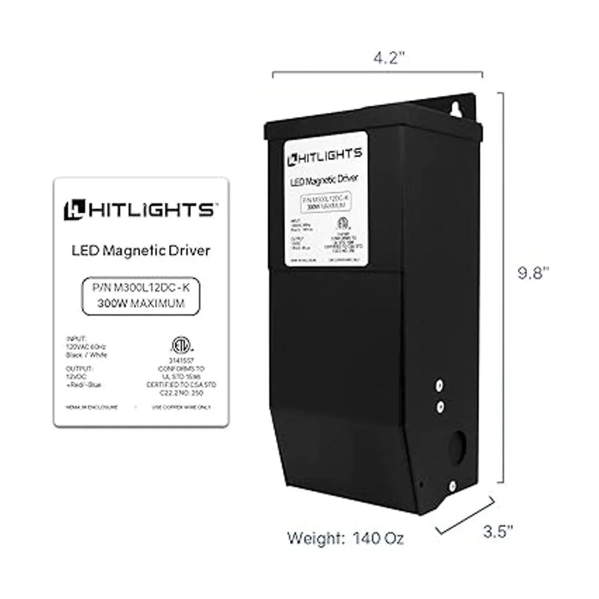 HitLights Controlador regulable de 300 W, controlador LED magnético, transformador de 110 V CA12 V CC. Compatible con Leviton para tiras de luces LED, productos LED de voltaje constante, fabricado en los Estados Unidos.