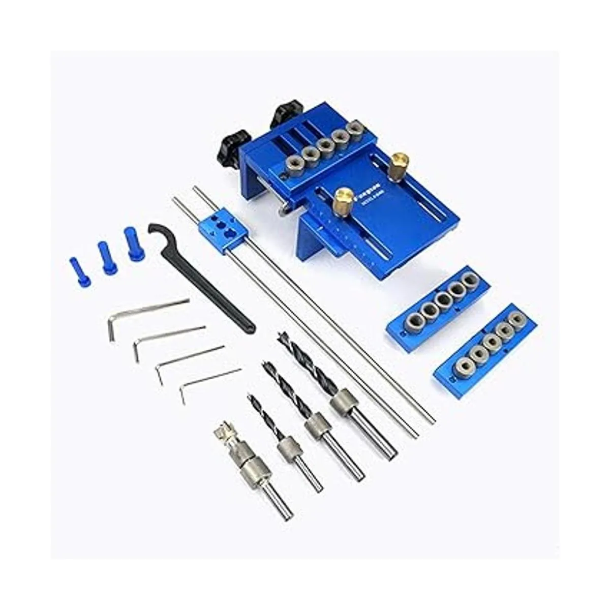 FUNCIN 3 en 1 sistema de perforación de tacos y bloqueo de leva sistema de perforación. Diseñado para taladrar agujeros de 0.236 in, 0.315 in, 0.394 in y agujeros de leva de 0.591 in. Adecuado para hacer juntas de borde a borde, de borde a superficie y de borde a esquina.
