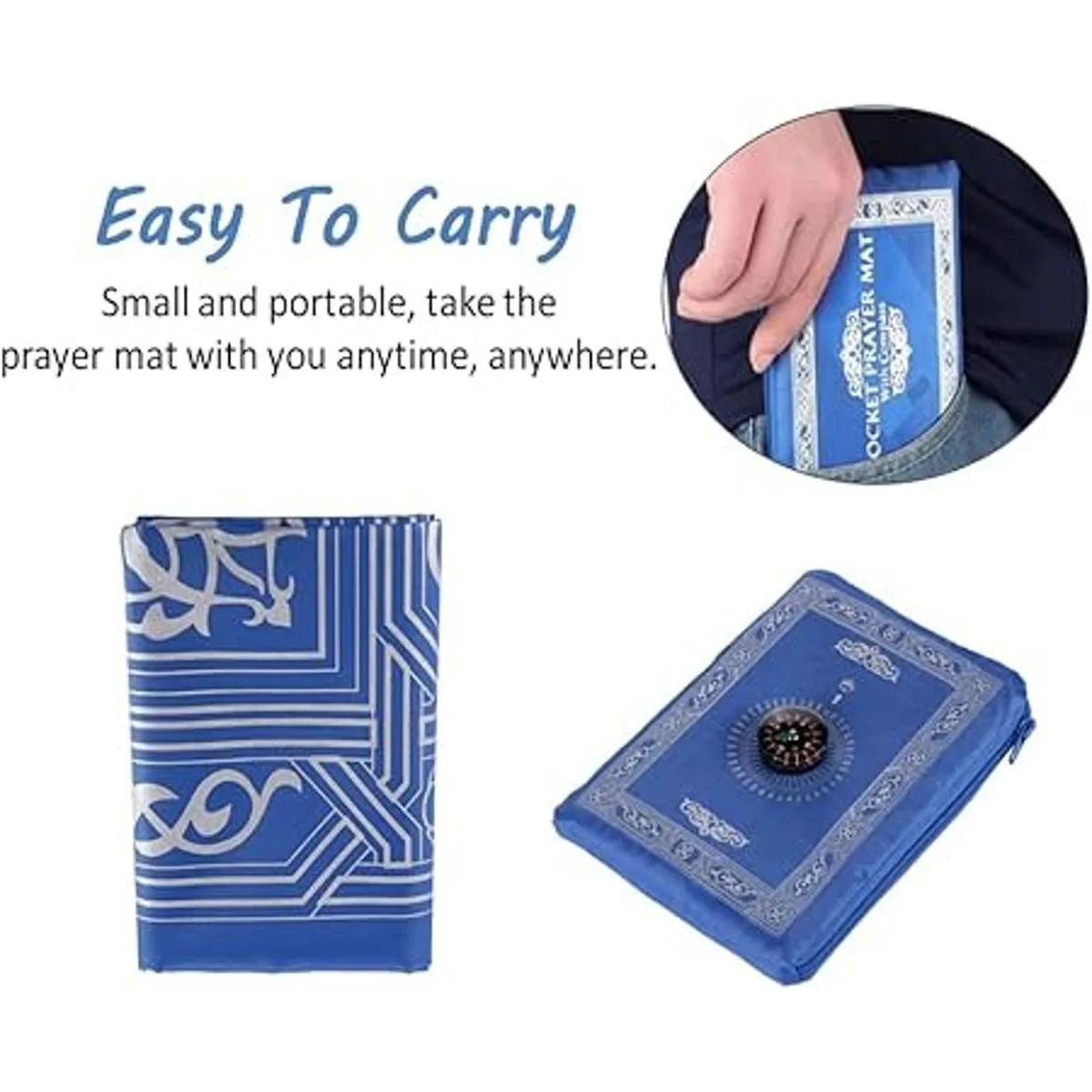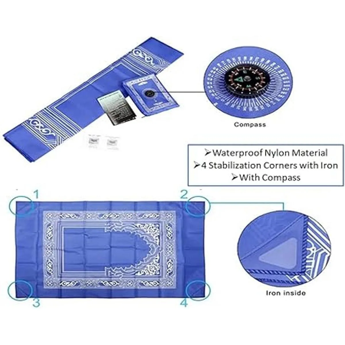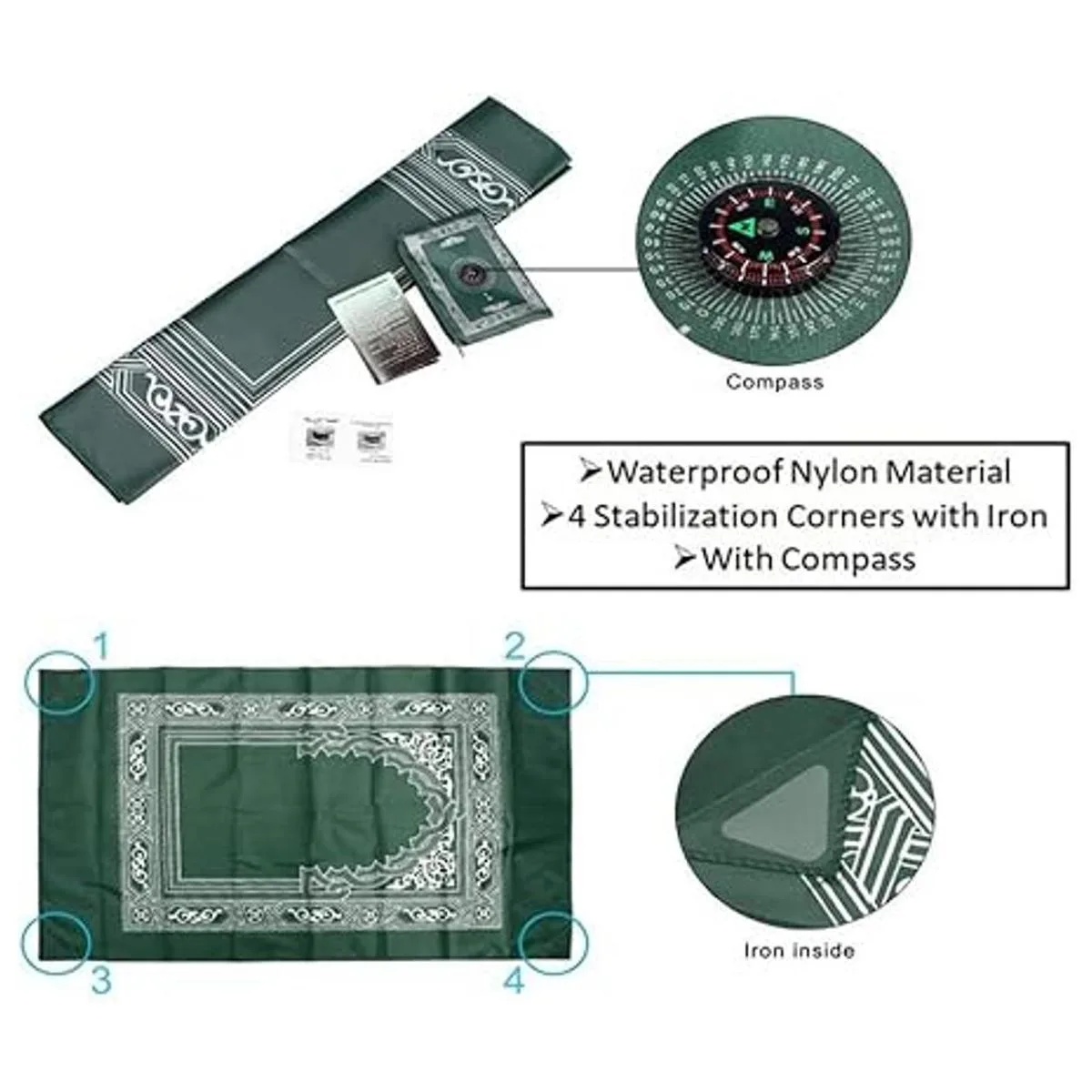Diseño de brújula: tapete de oración impermeable equipado con una brújula para añadir un toque de misterio a la alfombra de oración para que puedas orar más reverentemente. La alfombrilla de oración portátil es fácil de encontrar la dirección de oración, oración dondequiera que vayas.
