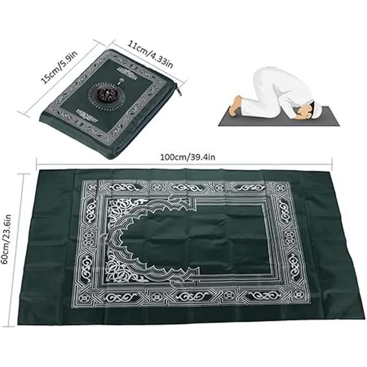 Tamaño de la alfombrilla de oración: el tamaño de la alfombrilla de oración de viaje desplegada es de 39.4 x 23.6 in, el tamaño de la alfombra de oración plegada es de 5.9 x 4.3 in, la alfombrilla de oración musulmana es ligera y portátil, puedes poner fácilmente la alfombra de oración en tus bolsillos y bolsas.