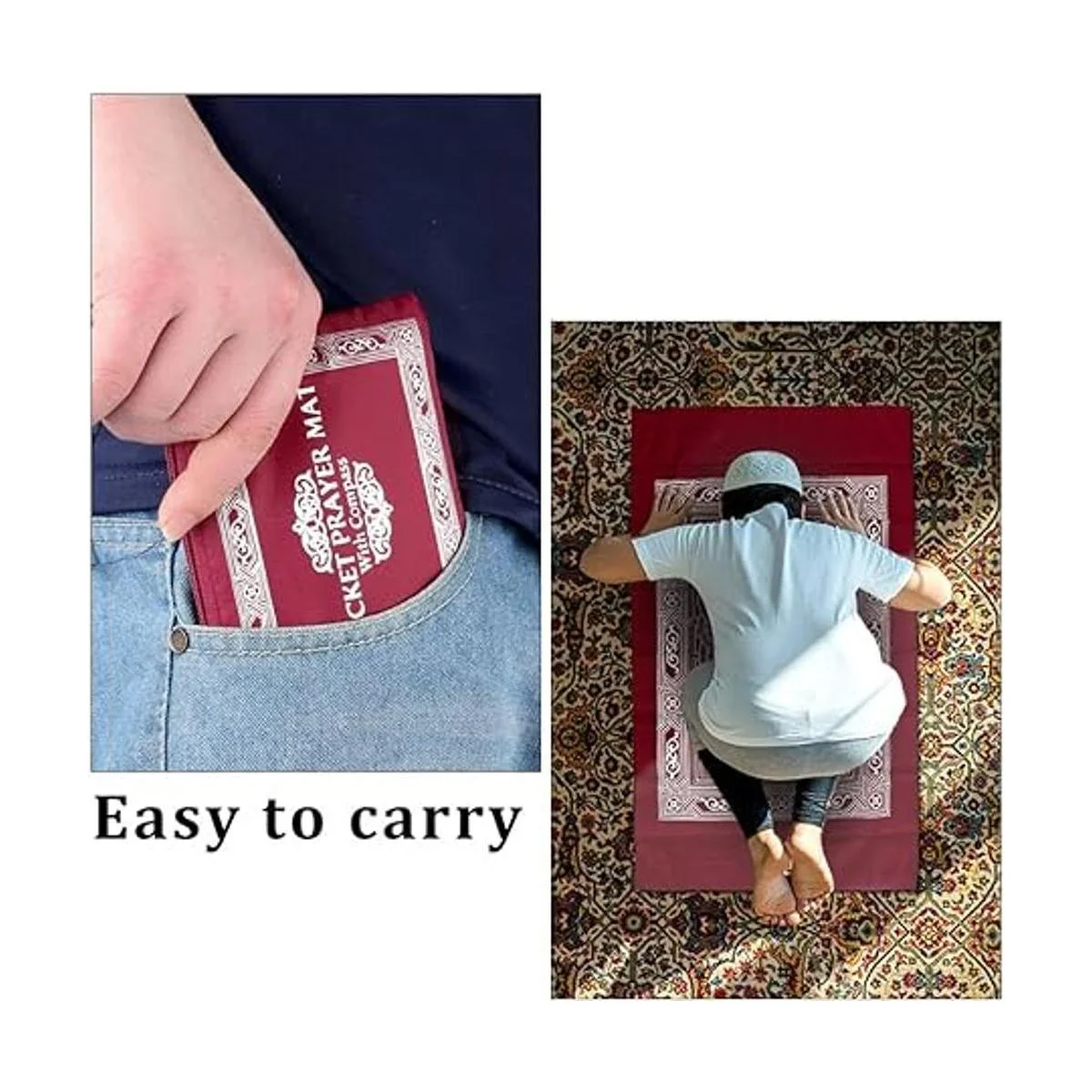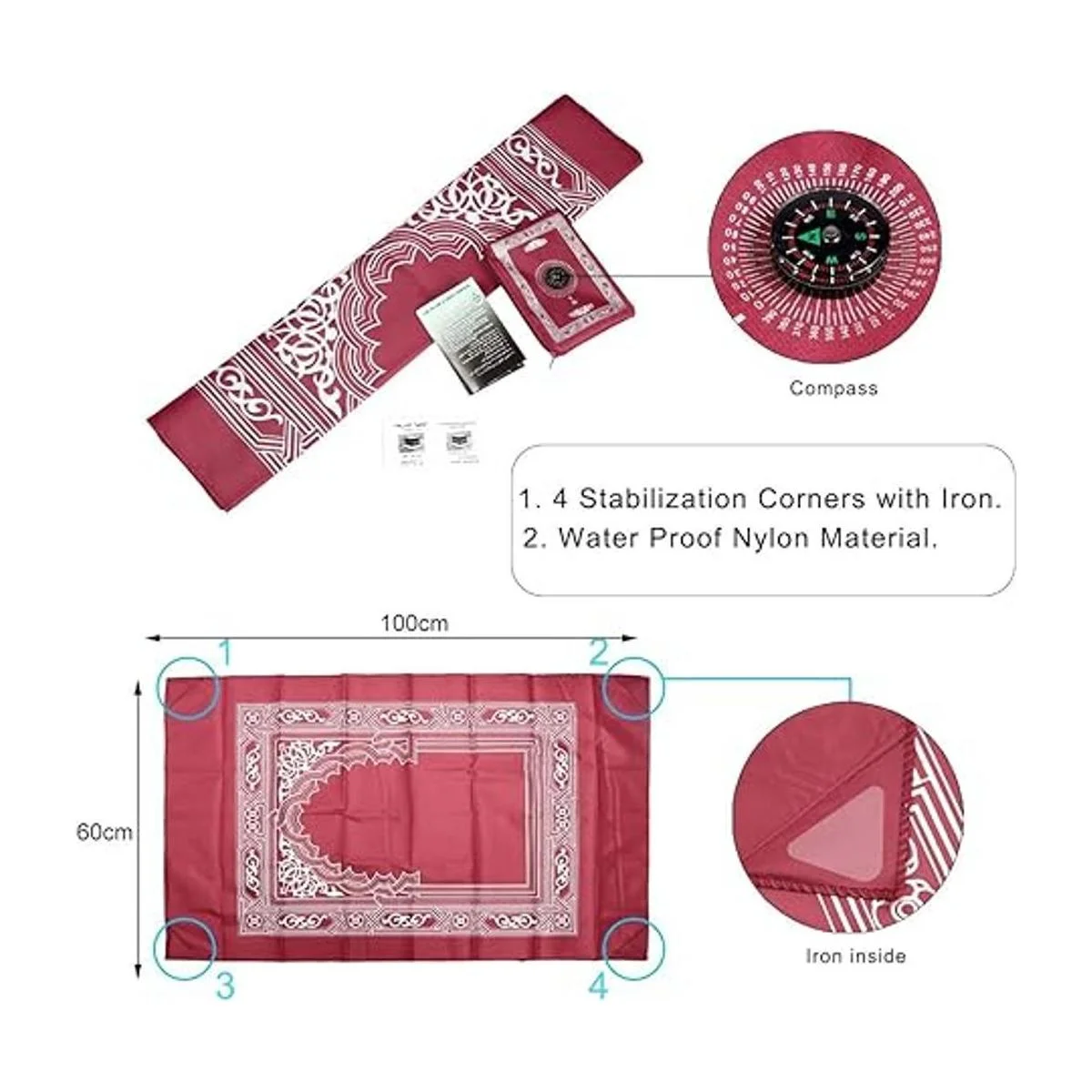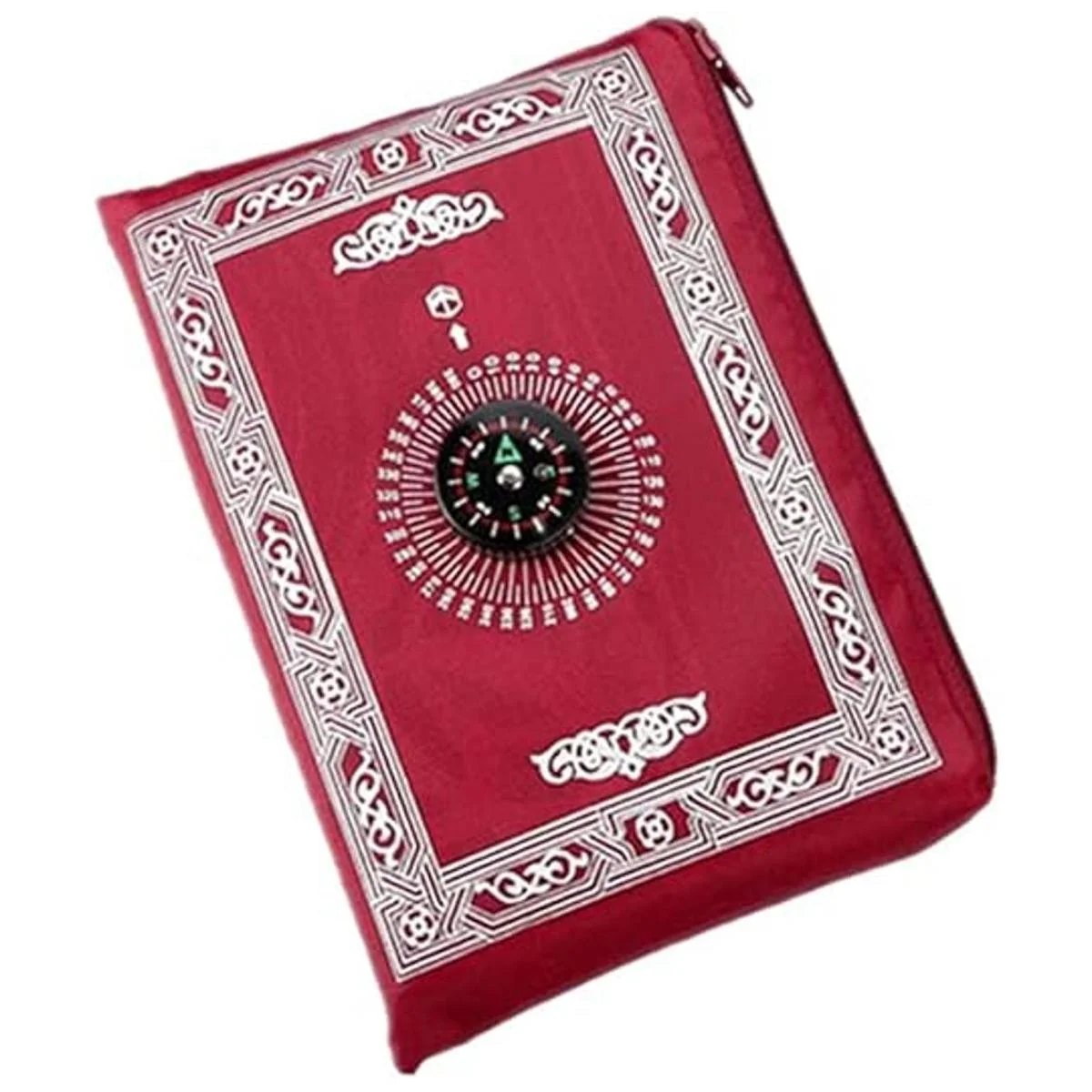 hitopin Portable Impermeable musulmán Oración Mat color rojo luz andprayer Alfombra con brújula musulmán Oración Alfombra Qibla Buscador y folleto