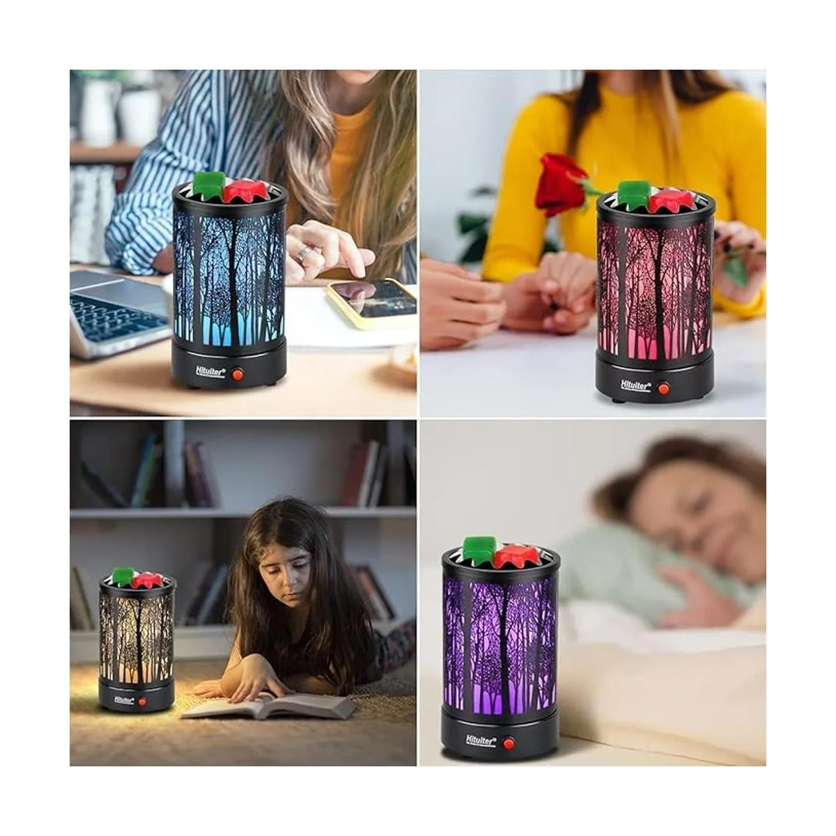 Diseño de iluminación de 7 colores: el calentador de cera aromática tiene una variedad de colores de luz, y hay tres modos para elegir: cambio lento multicolor, cambio rápido multicolor y múltiples luces monocromáticas. El color es brillante, puedes mantener el cambio de ciclo de color, o se puede fijar en el color que quieras. El exquisito diseño de patrón de bosque es como una obra de arte.