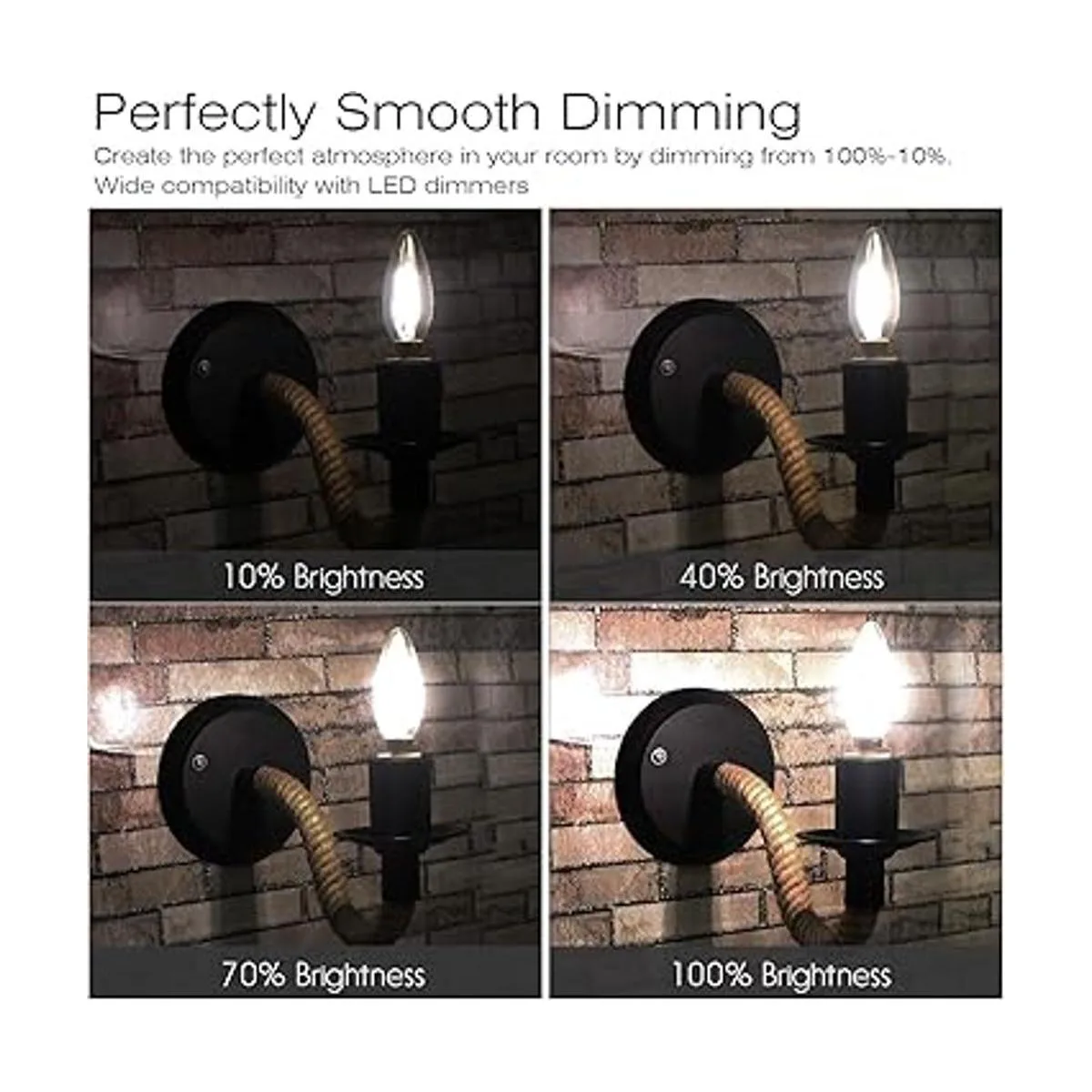 Mayor duración: nuestras bombillas LED de filamento de punta de llama están fabricadas con materiales de alta calidad y cumplen con todos los criterios eléctricos, con un enfoque en la longevidad y la sostenibilidad ambiental. 35.000 horas. o más de larga duración.