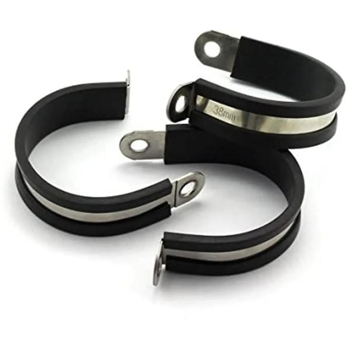 Paquete: paquete de 6 abrazaderas de cable acolchadas de goma de acero inoxidable de 1.496 in, apto para la conexión de cables, tuberías, mangueras o cables de paneles o marcos diámetro exterior de 11/2 pulgadas.