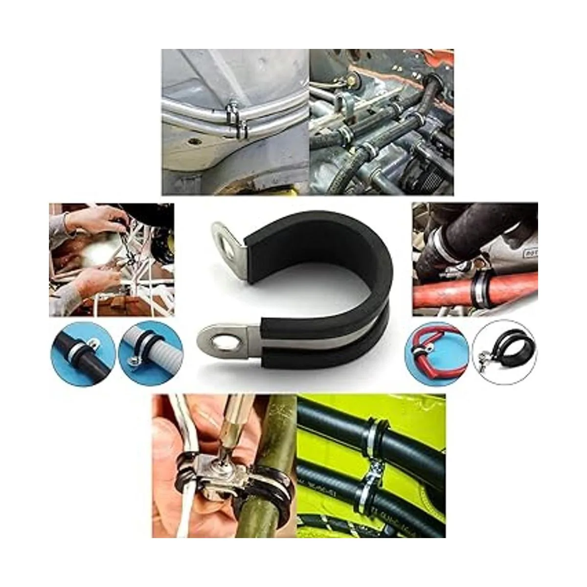 La junta de goma puede ralentizar la vibración y la turbulencia, reducir la abrasión de cables y mangueras, se ajusta estrechamente a la manguera y el cable, para asegurarse de que la abrazadera se fija firmemente en su lugar.