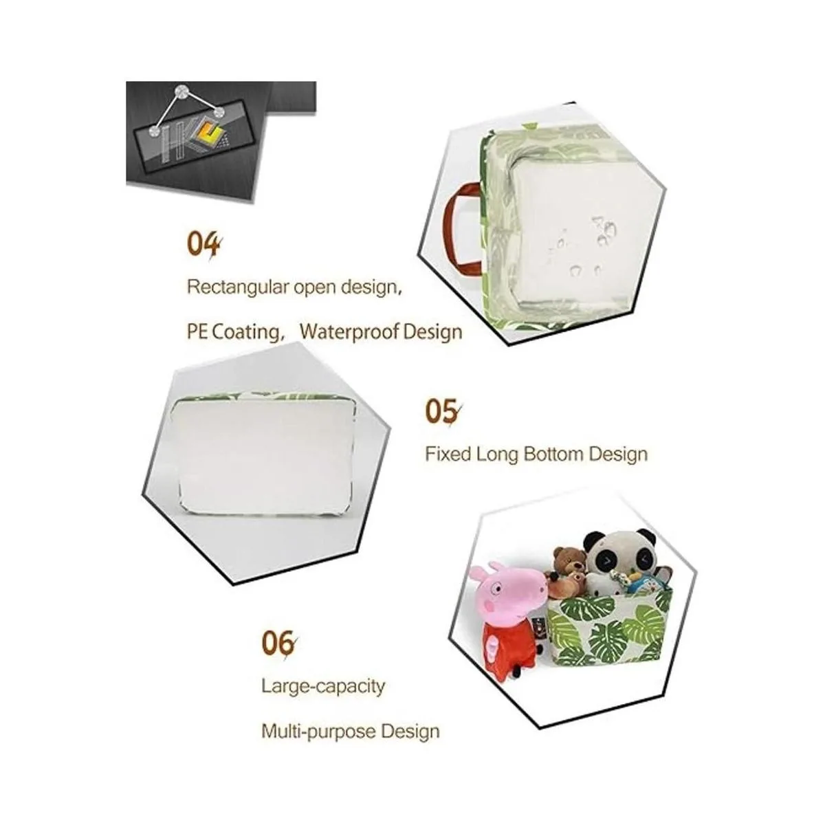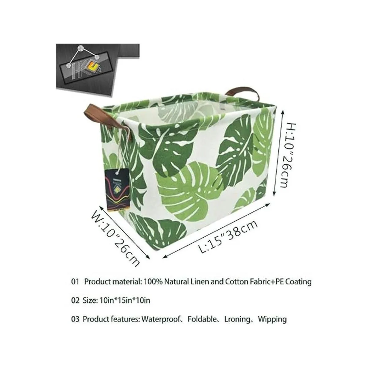 Material natural: poliéster forro de revestimiento de polietileno impermeable. Marco de alambre resistente en el material en la parte superior, que para lograr el efecto de resistencia a la humedad, ligero y duradero. Fácil de limpiar.