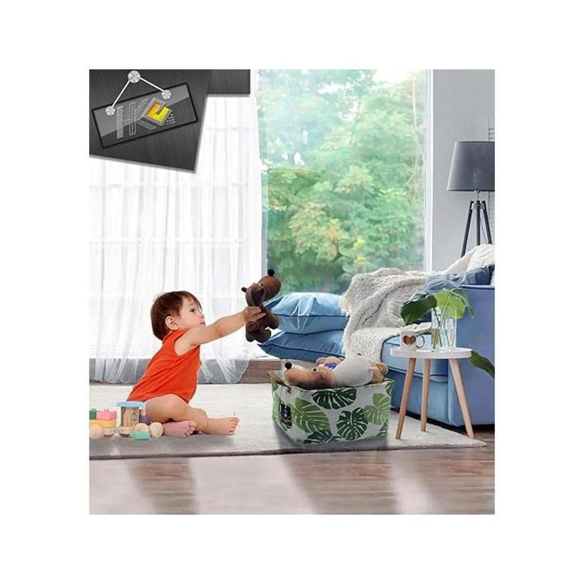 HKEC Cesta rectangular de almacenamiento con asas, caja de almacenamiento plegable, bonita cesta organizadora de lona para juguetes de mascotasniños, libros, sala de juegos, papelera de juguete, armario, cestas de estante, cesta de bebé PANDA