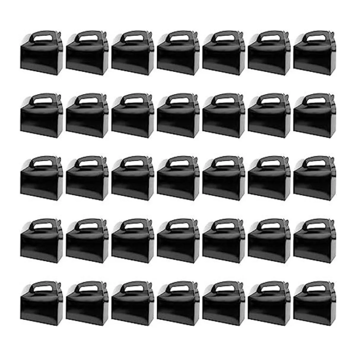 HKLMRO 35 cajas de regalo para fiestas, cajas de regalo de galletas de caramelo negras, bolsas de regalo portátiles, bocadillos, cartón de regalo, ideal para niños, cumpleaños, Halloween, boda, baby shower, suministros de Pascua, decoración