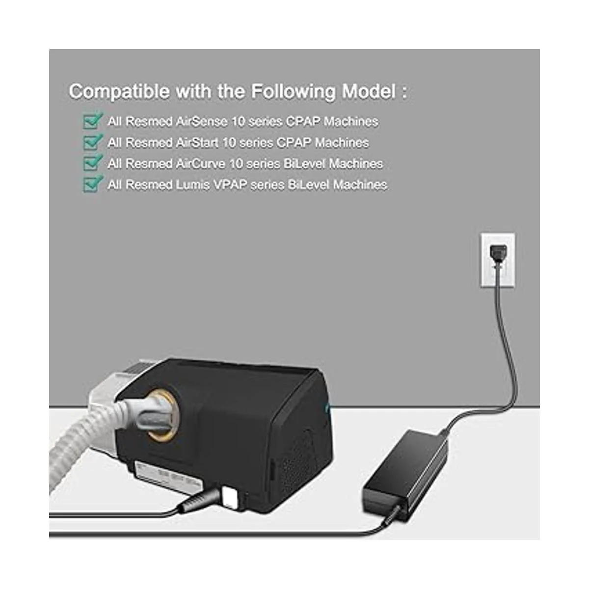 HKY Adaptador universal de corriente alterna de 24 V para todas las máquinas ResMed AirSense 10, AirStart 10 CPAP y AirCurve 10, Lumis VPAP BiLevel Series 90W Resmed Airsense 10 cable de fuente de alimentación S10 370001 37344 37028