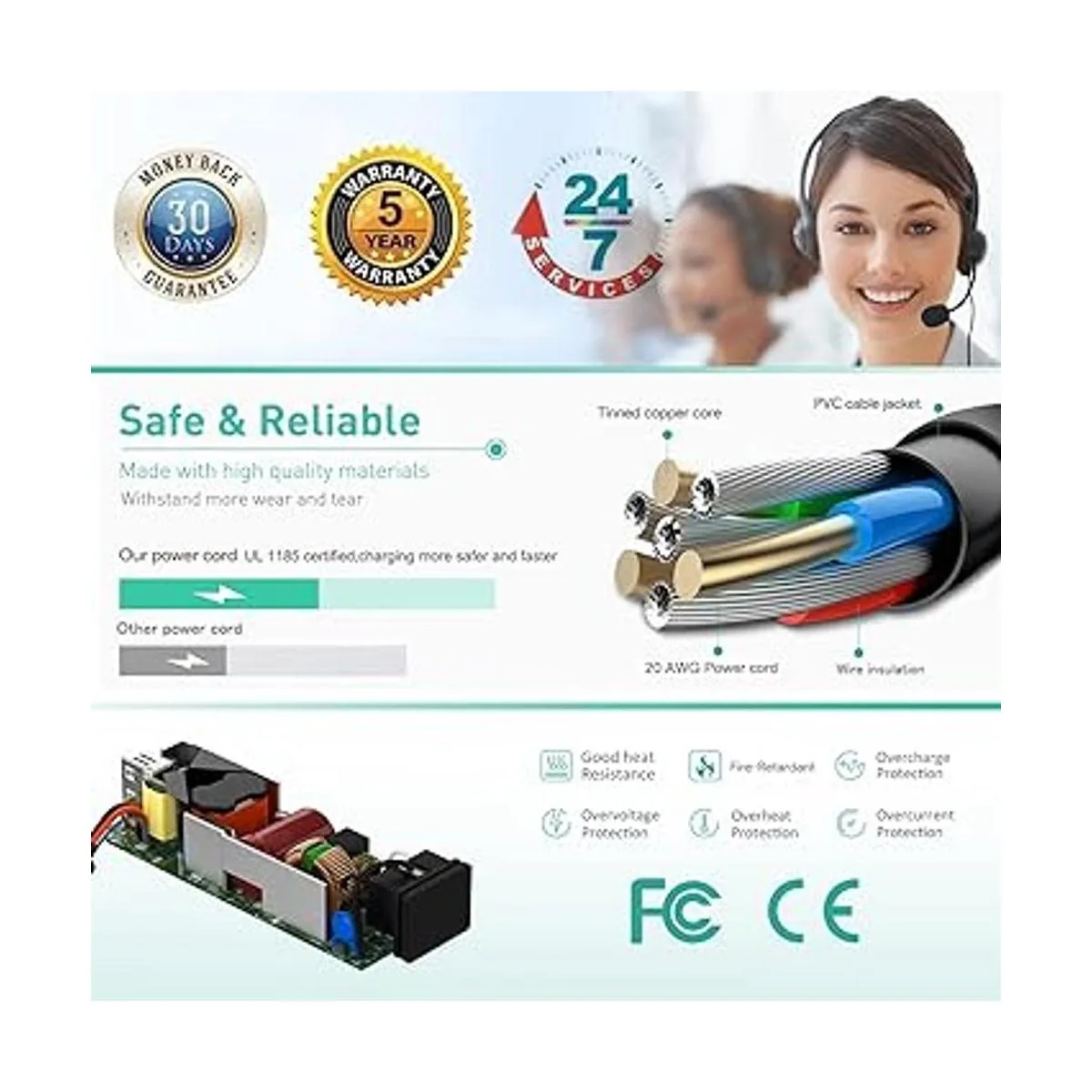 Alta calidad y garantía de seguridad Este adaptador está fabricado con materiales de la más alta calidad. Retardante de llama de grado V0, protección OVP, OCP, SCP OVP: protección de sobrevoltaje de salida. OCP: Protección de sobrecorriente de salida. SCP: protección de cortocircuito de salida más seguridad que otros adaptadores.