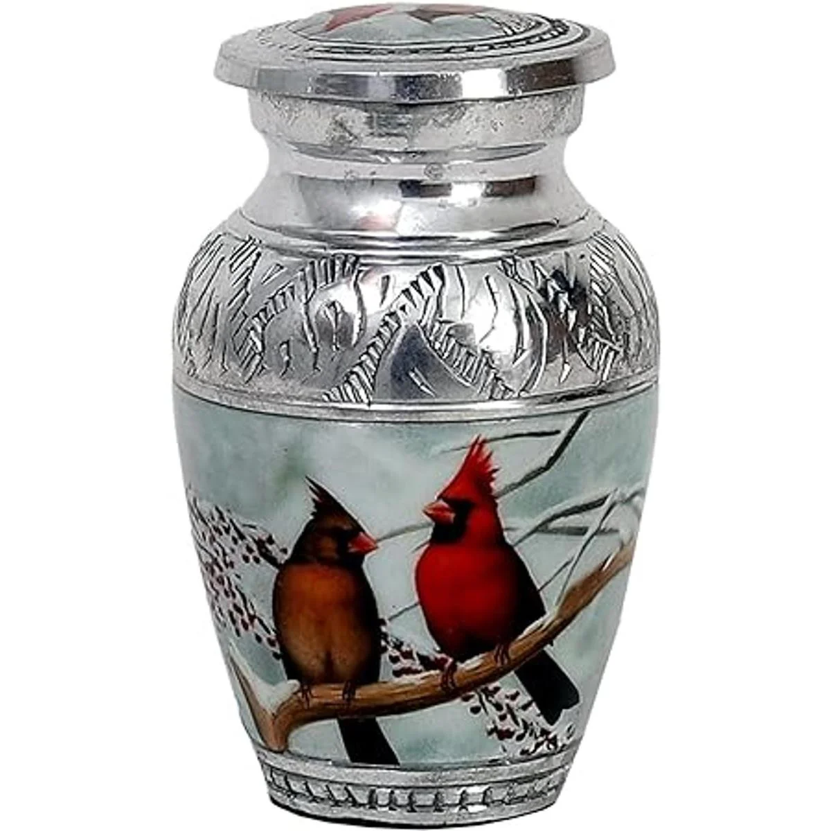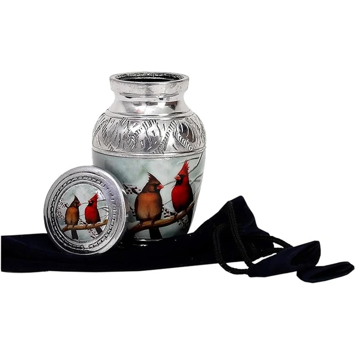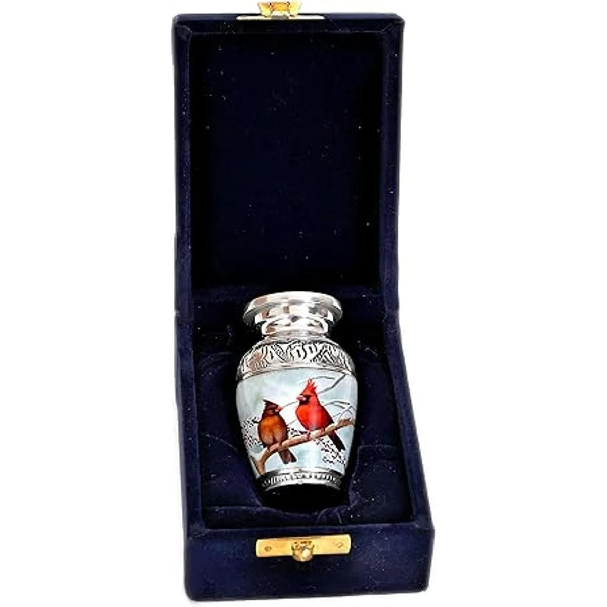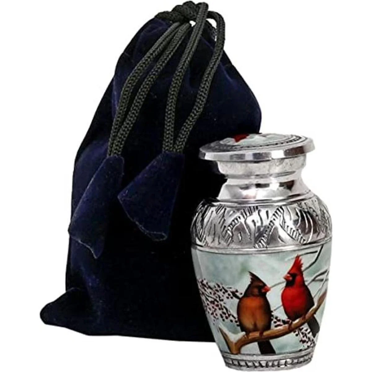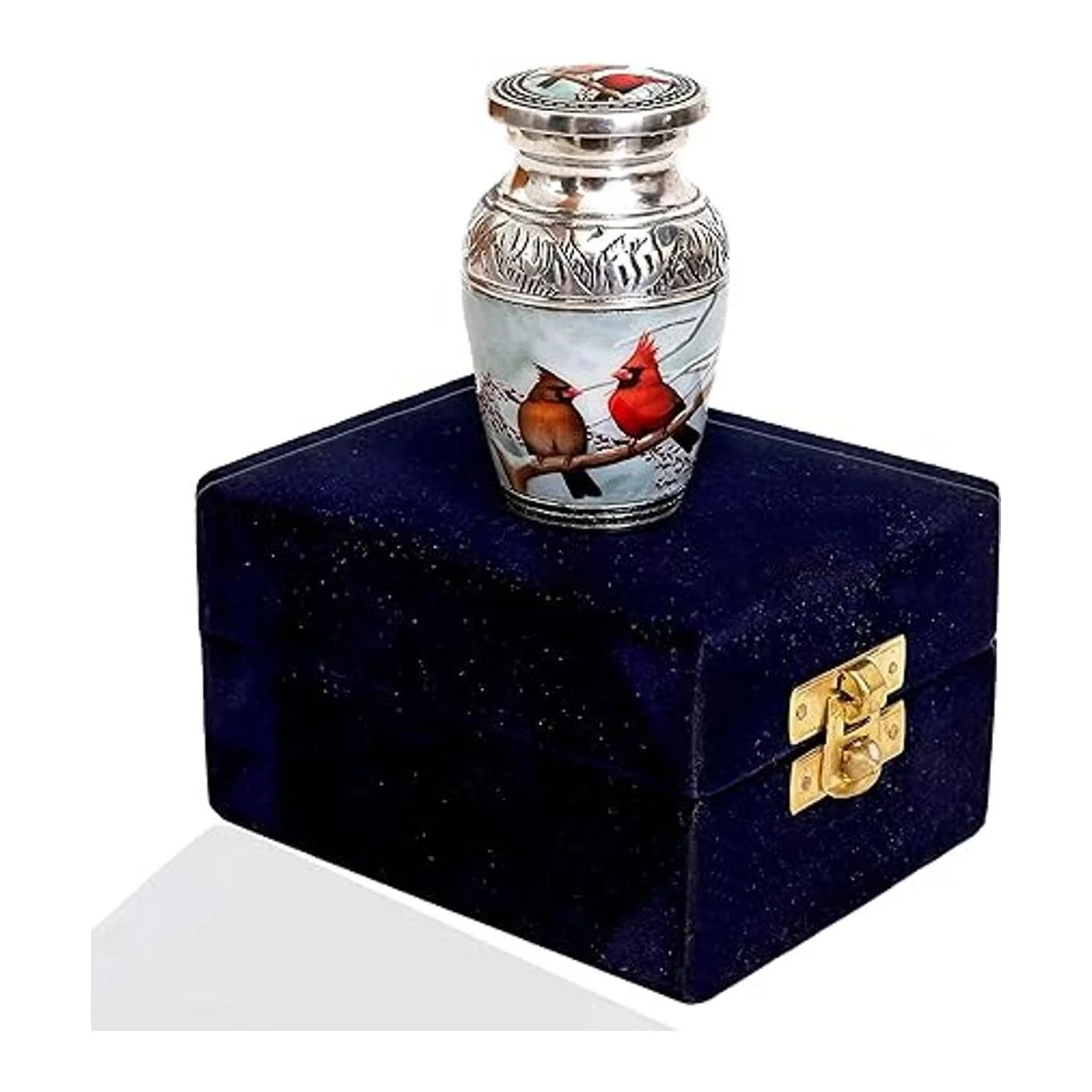 HLC Pequeña y encantadora urna de recuerdo de pájaro de pareja cardenal 1 Urna de recuerdo para cenizas humanas con 1 bolsa de terciopelo Mini urna conmemorativa de recuerdo asequible 4.5 pulgadas