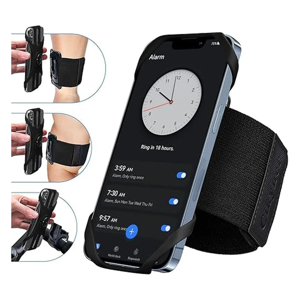 HLOMOM Brazalete para correr, 3 en 1, soporte para teléfono deportivo, soporte para teléfono de bicicleta, giratorio de 360 y desmontable, soporte para teléfono móvil para teléfonos de 4.5 a 7 pulgadas, gimnasio, correr, senderismo