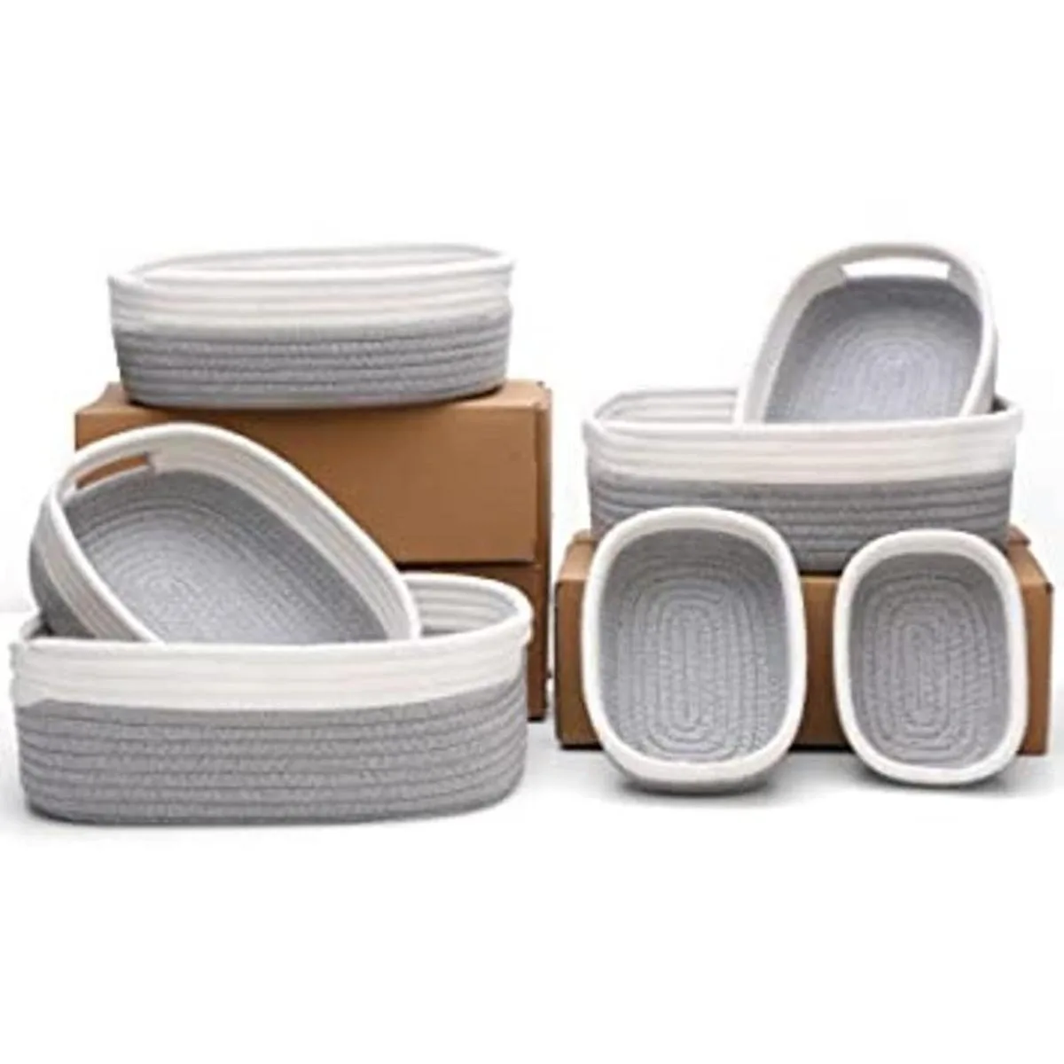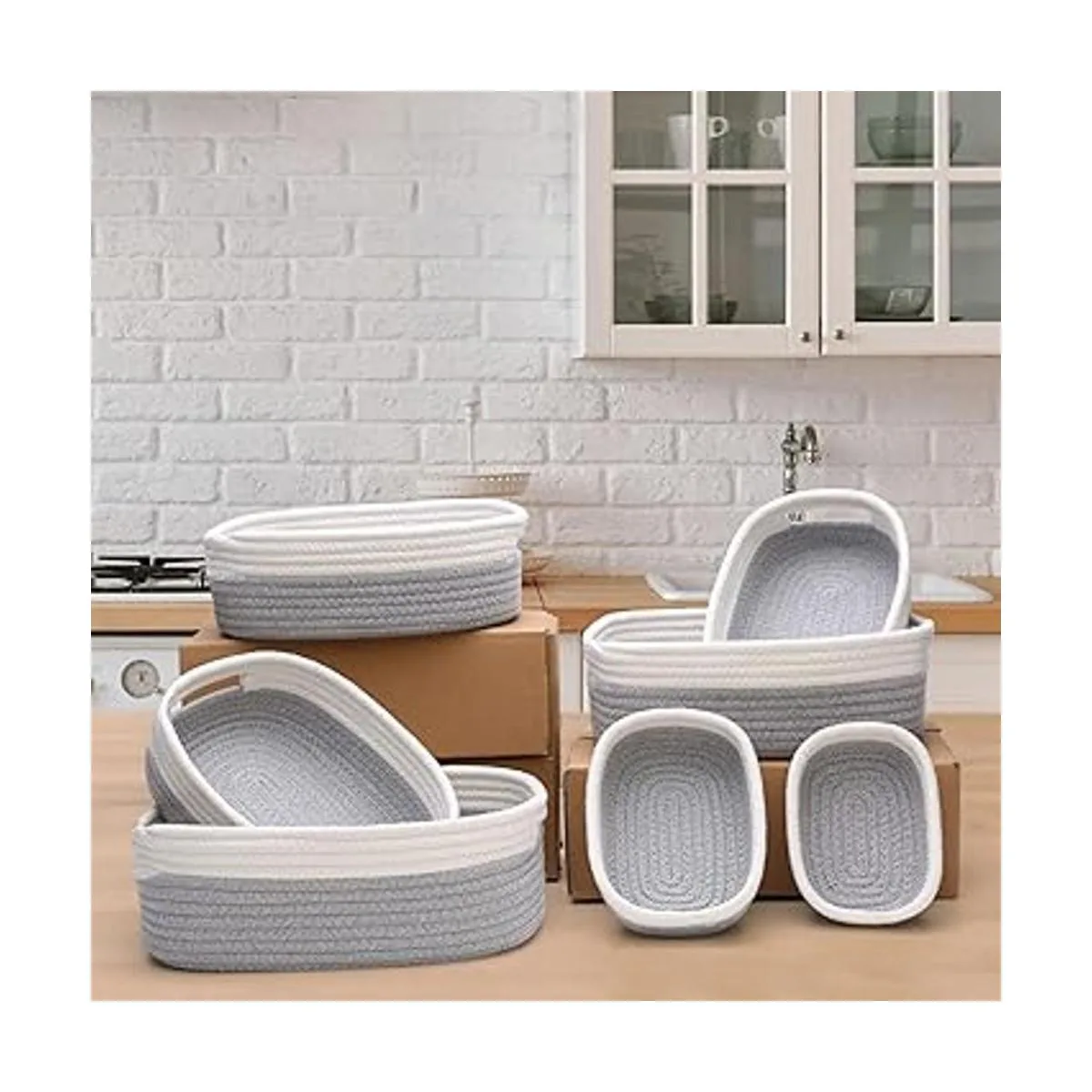 HLWDFLZ Juego de 7 cestas tejidas de cuerda de algodón, cesta de almacenamiento tejida, cesta de lavandería para mascotas, cesta de cuerda de algodón para organizar juguetes, mantas, toallas, libros, ropa blancogris