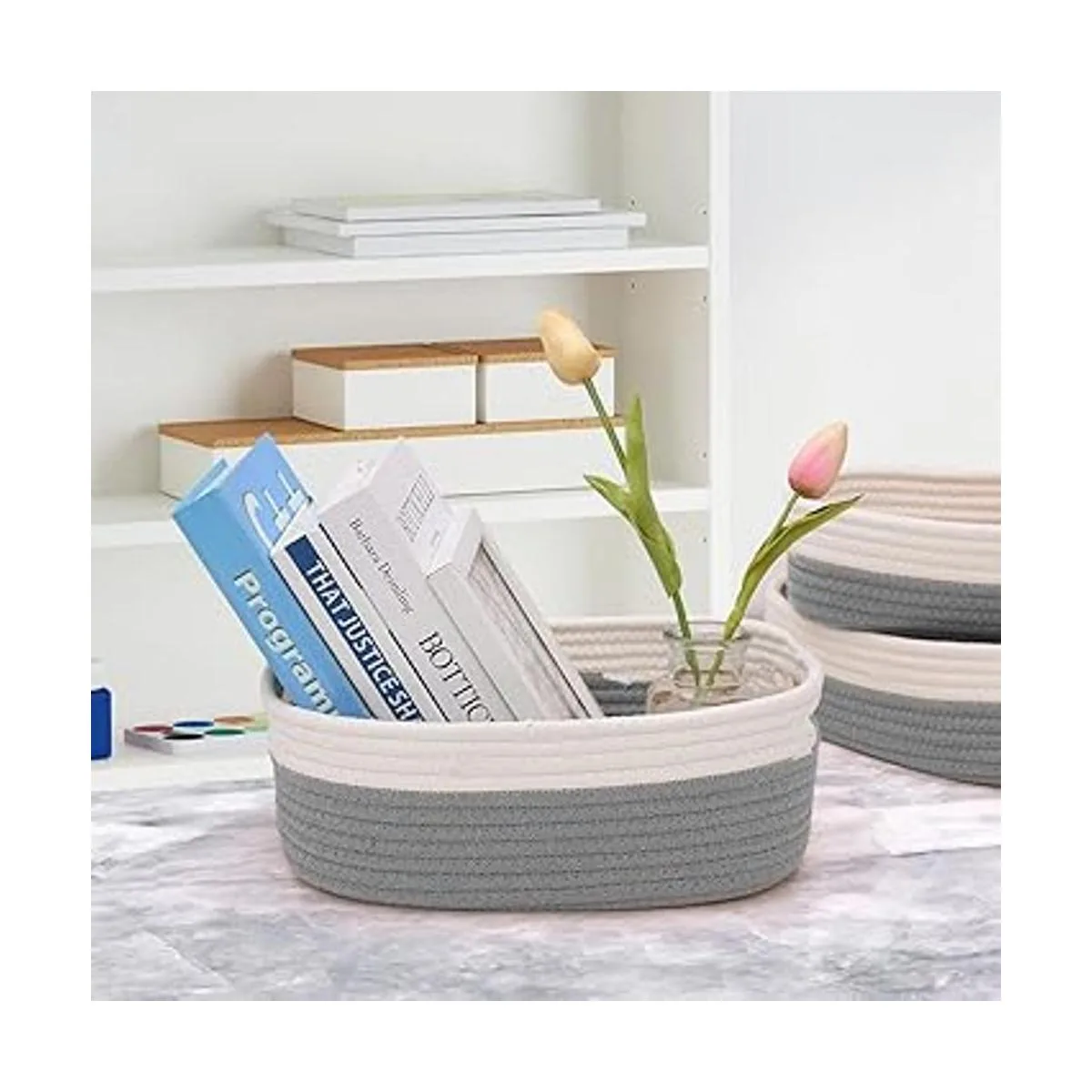 Diseño atento: si estás buscando una cesta de cuerda de algodón tejida atractiva y funcional, esta puede ser la solución perfecta para ti. Ponemos la cesta de cuerda de algodón plana en la caja de regalo para evitar la flacidez y la deformación. El diseño pensado aporta comodidad y eficiencia a tu vida.