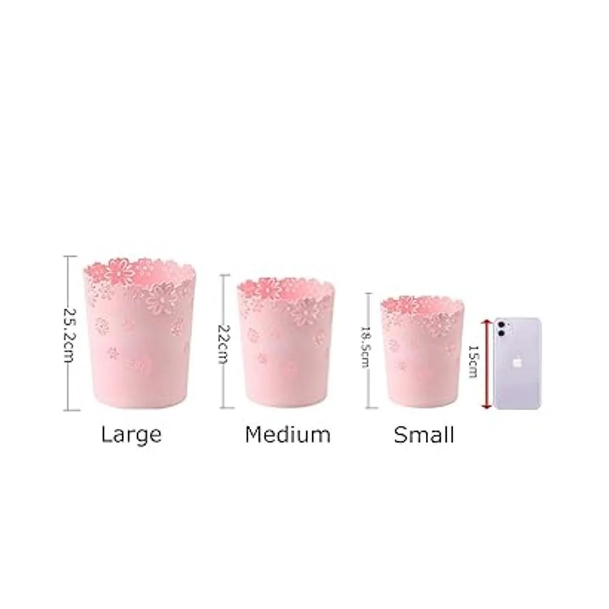 HMANE Cubo de basura de plástico y sin asa con flores decorativas grabadas sobre su superficie