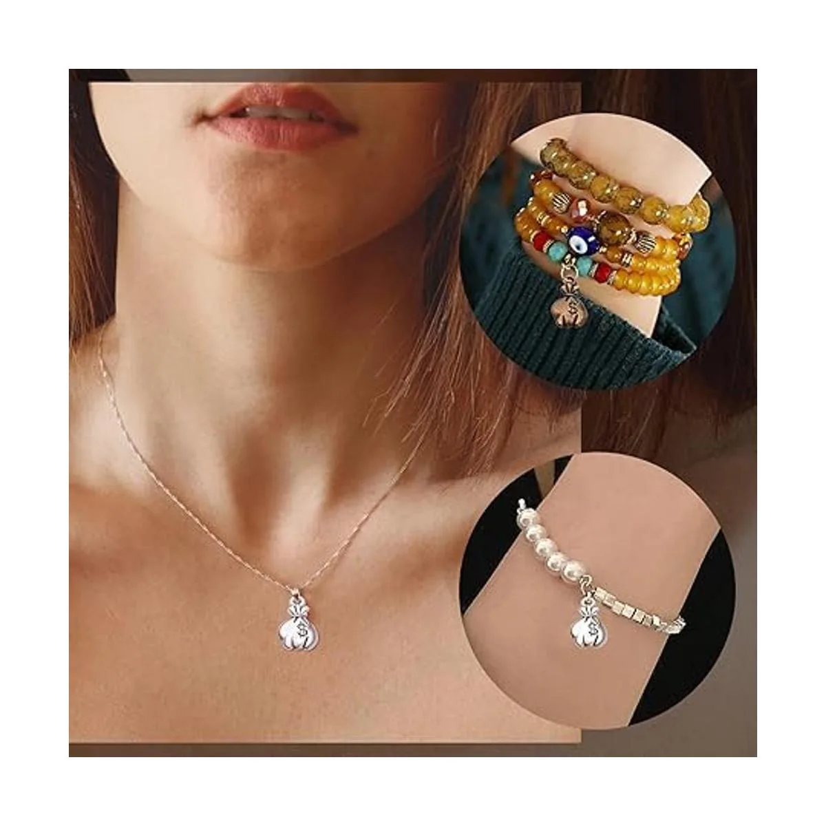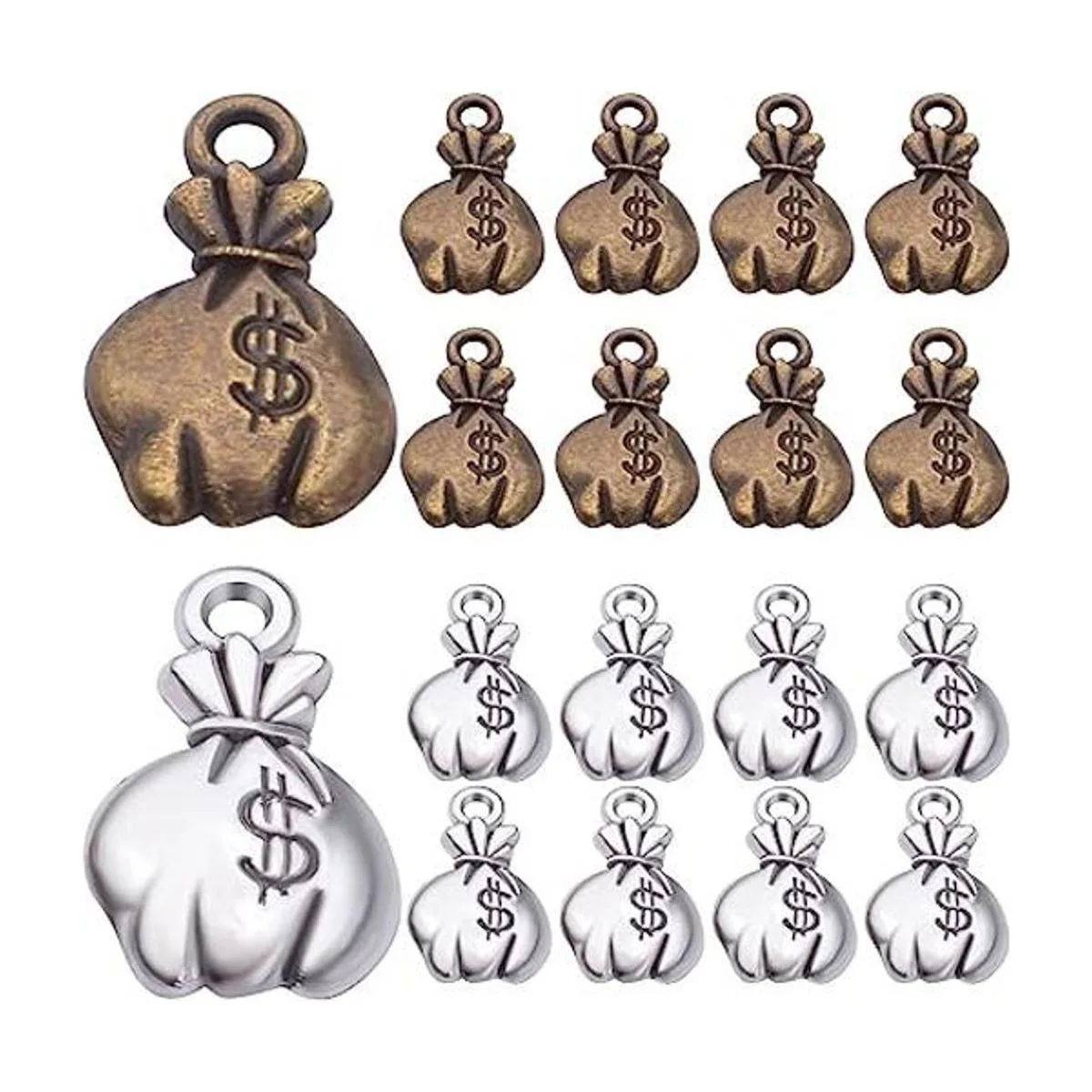 Colgantes de bolsa de dinero: el dinero es un símbolo de riqueza y suerte, y estos dijes están diseñados en estilo de bolsa de dinero con signos de dólar, atractivos y a la moda, lo que hace que tus joyas sean más especiales y encantadoras
