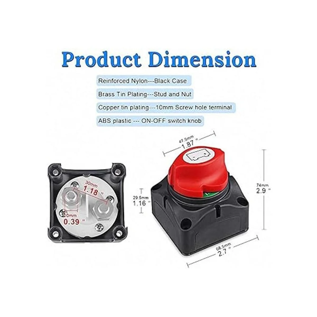 Amplia aplicación: el interruptor de desconexión de batería es ampliamente utilizado en RV, barcos, cable de alimentación de cabrestante, se puede aplicar al interruptor interior o al exterior del equipo eléctrico, incluyendo luz intermitente, luz de chasis, luz antiniebla, luz de cúpula y más