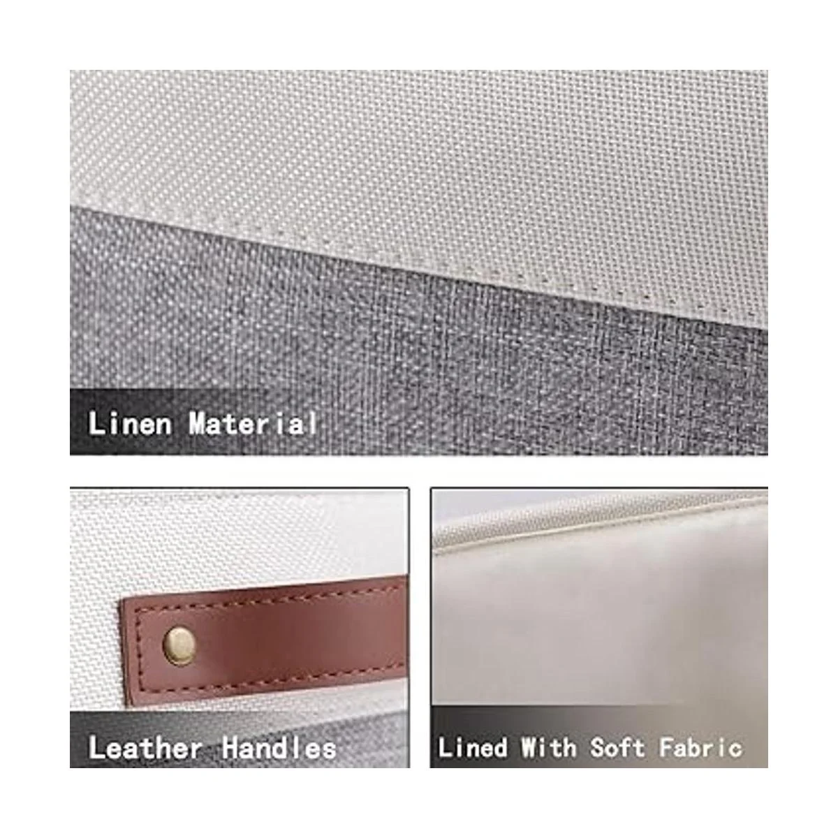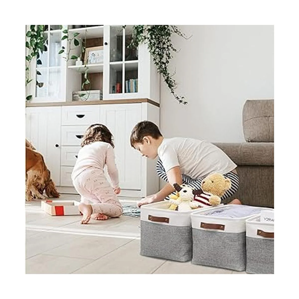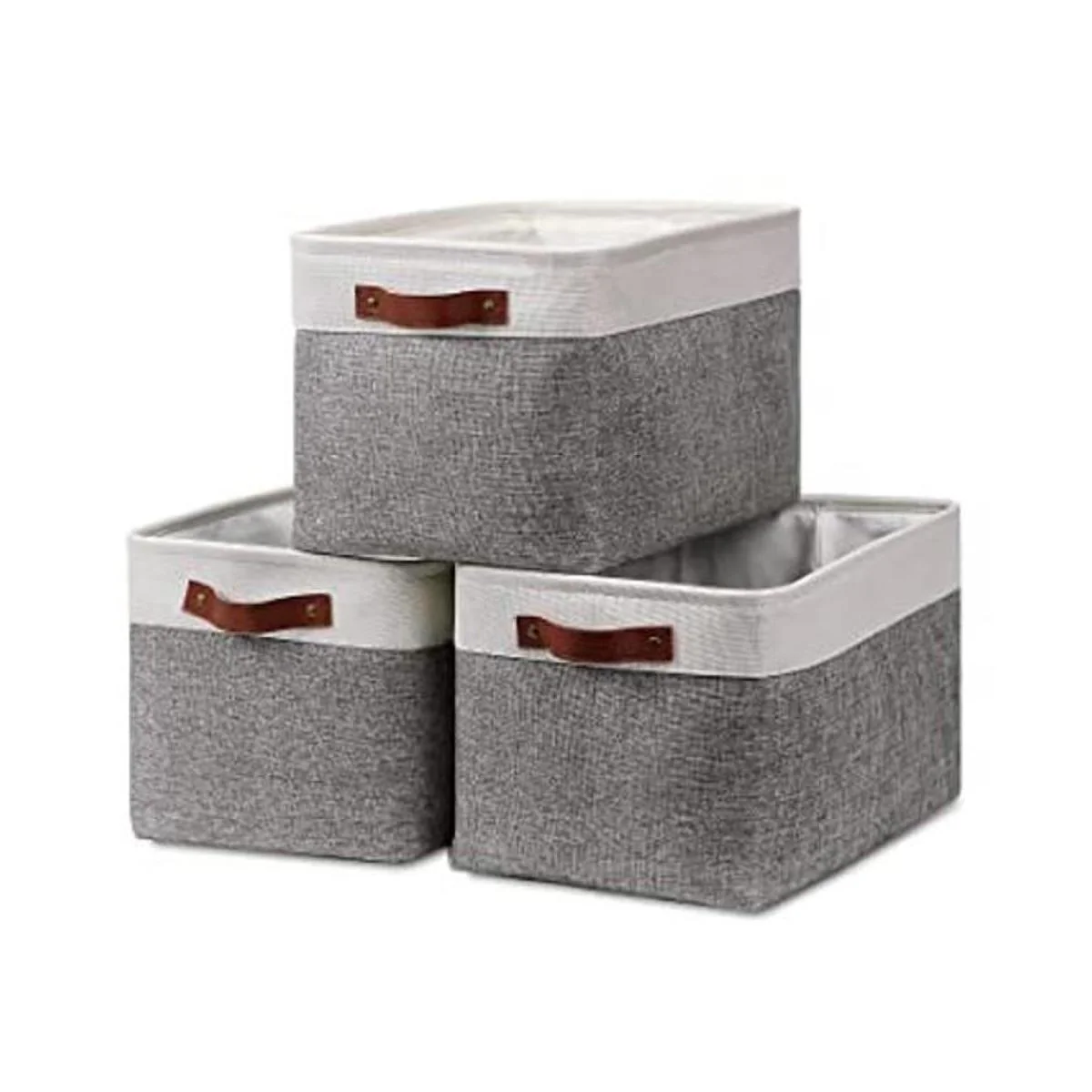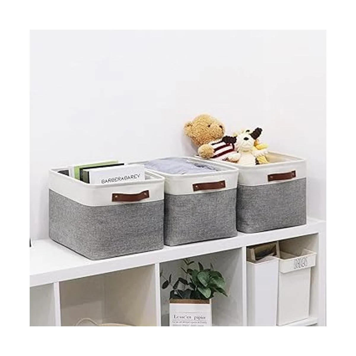 HNZIGE Cestas de almacenamiento de tela para estantes paquete de 3 canastas grandes de almacenamiento plegables para organizar, juego de cestas decorativas con asas para armario, ropa, juguetes, hogar blanco y gris, 15 x 11 x 9.5 pulgadas