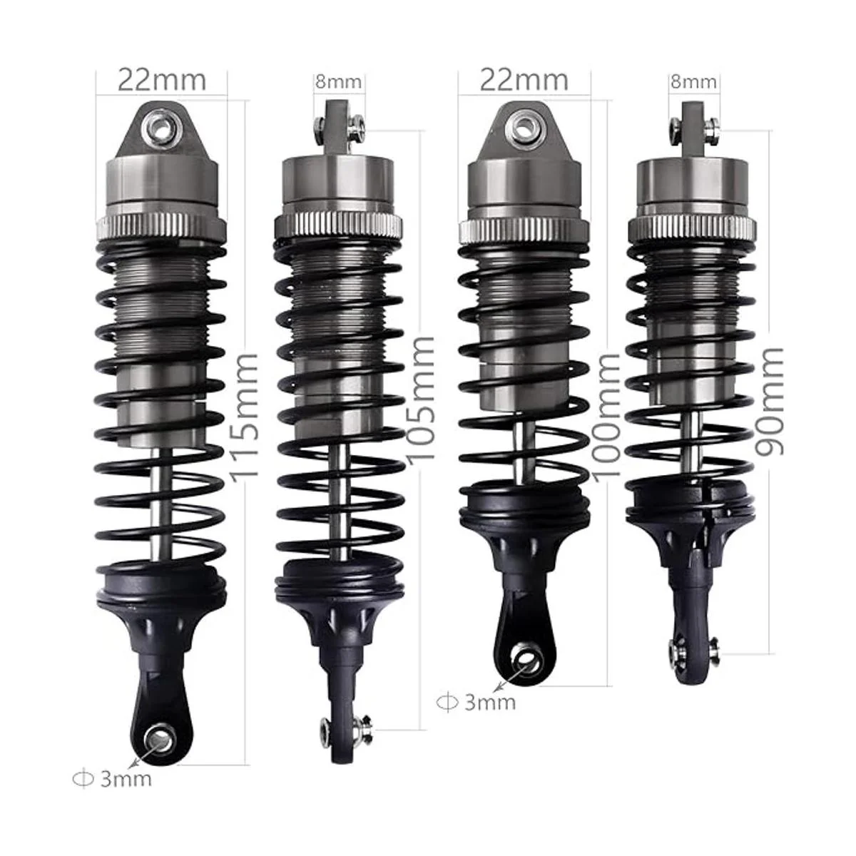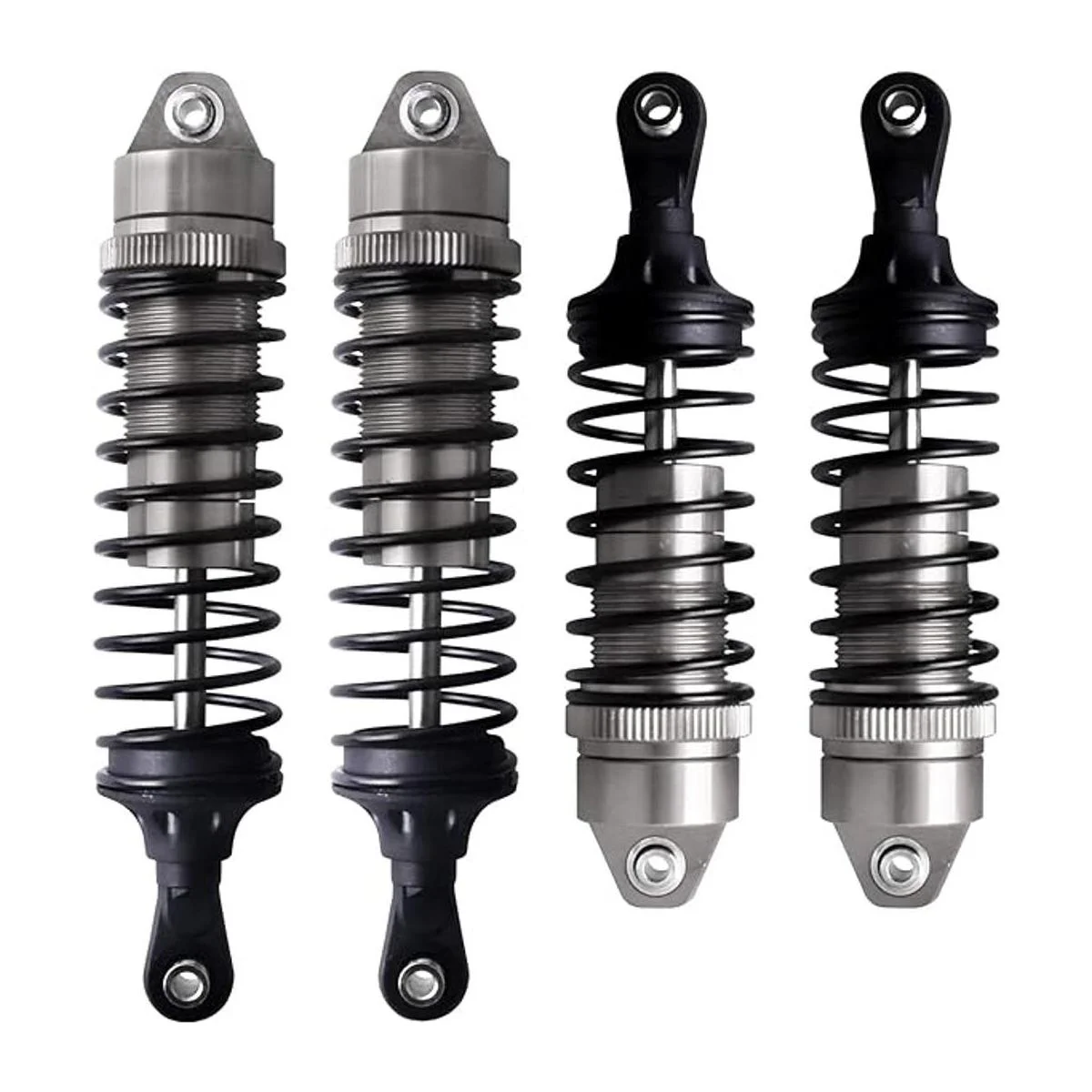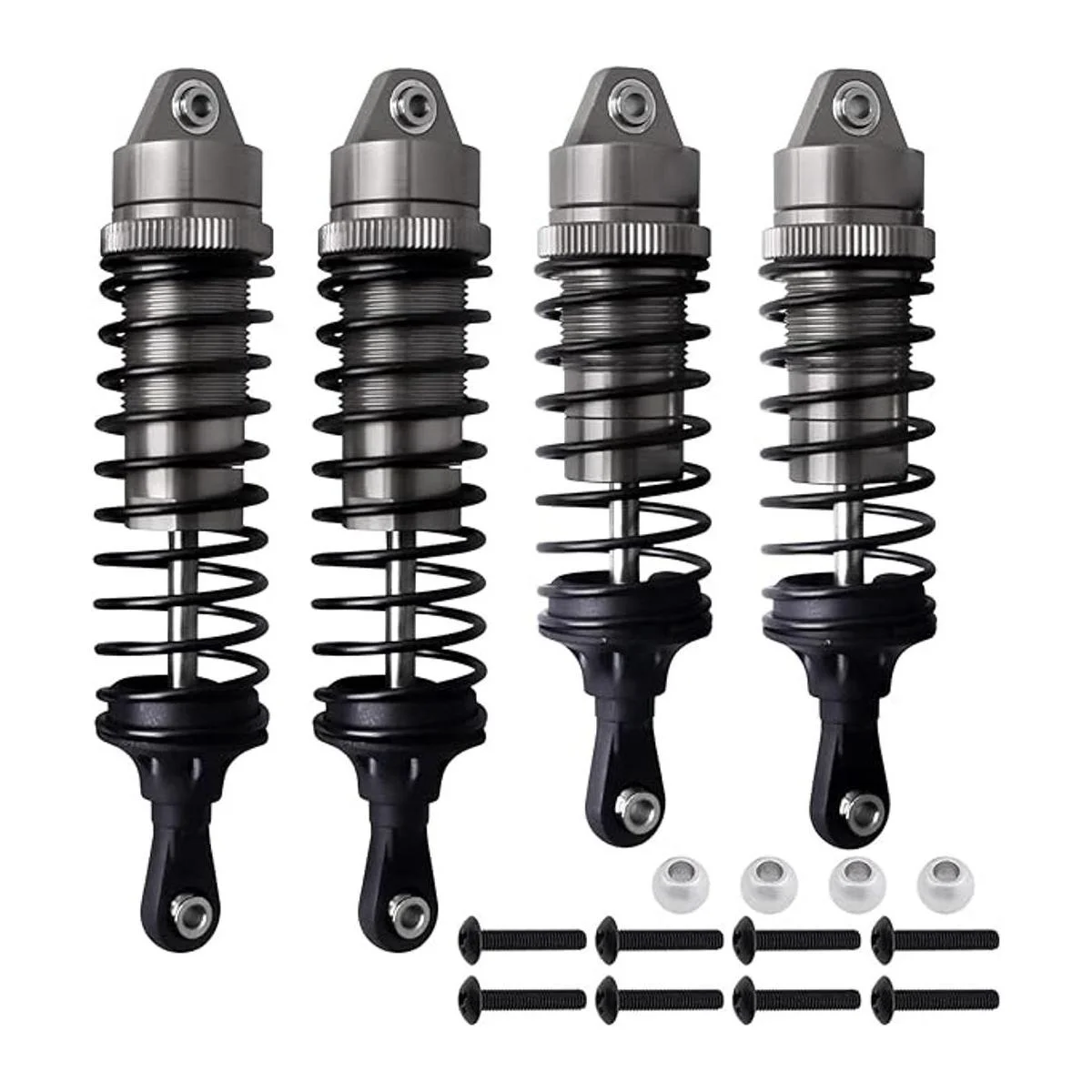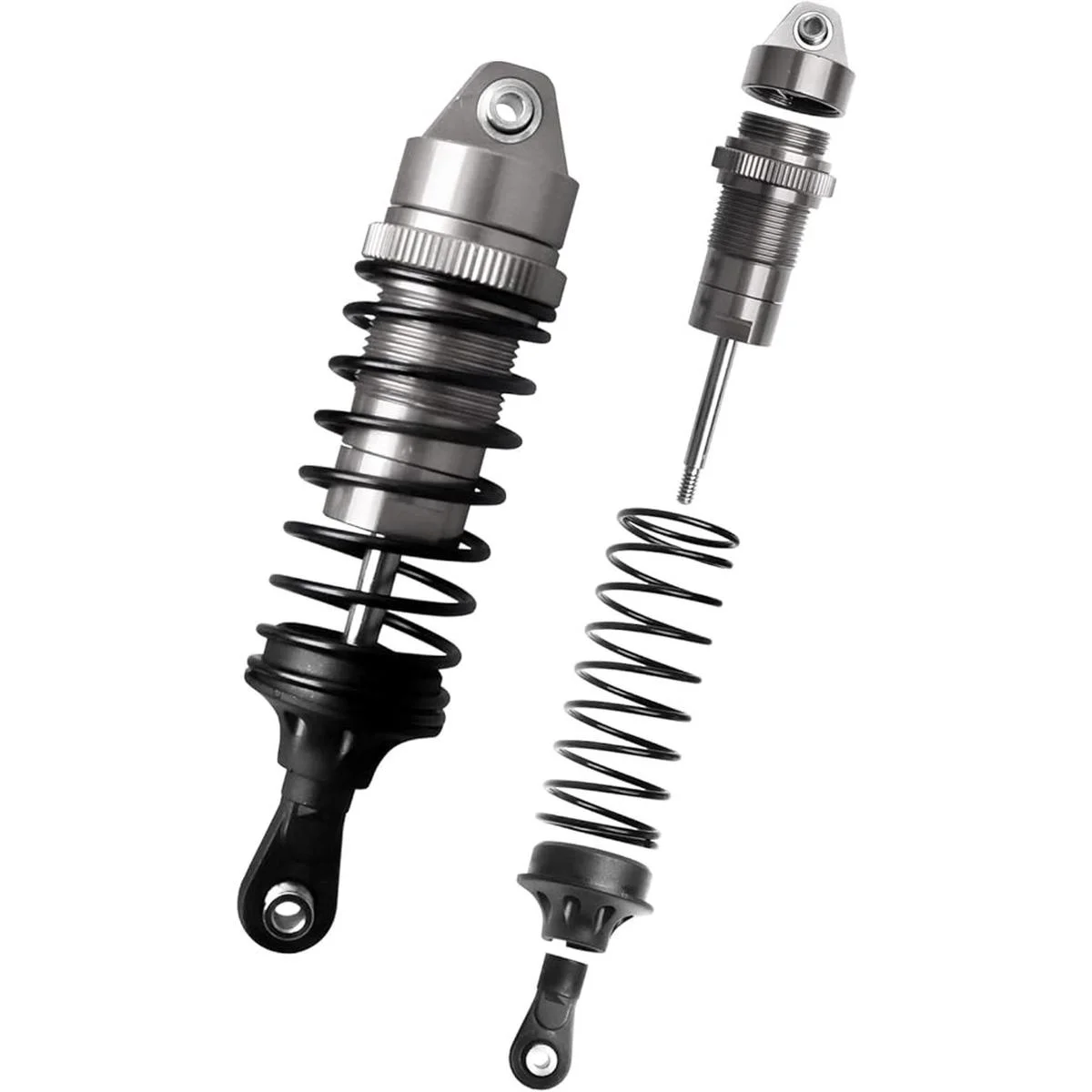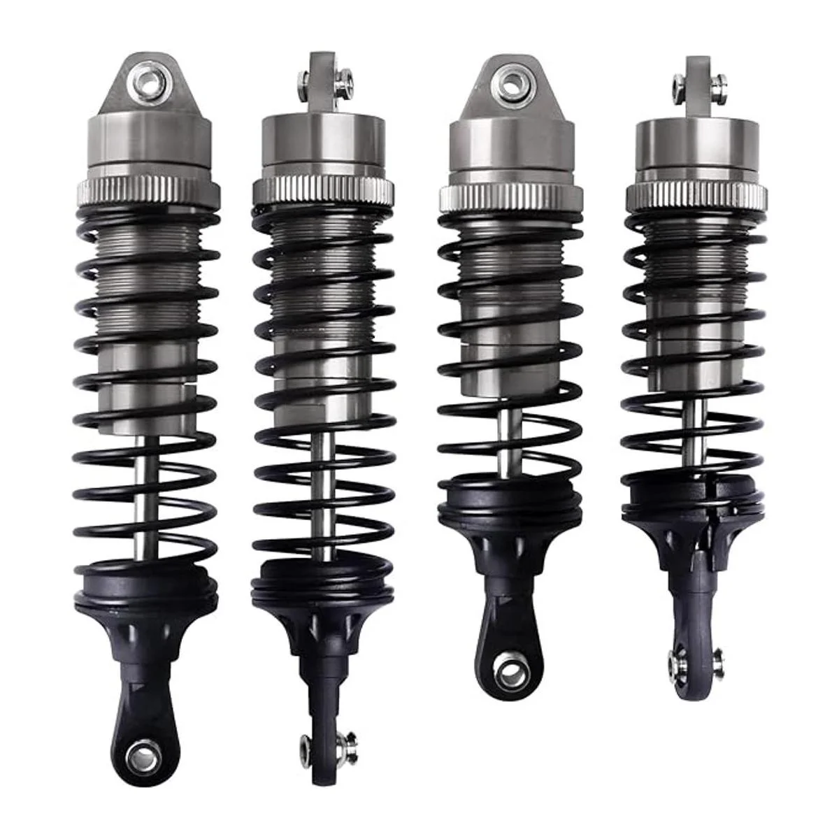 Juego de 4 amortiguadores de control remoto: 2 amortiguadores delanteros de aleación longitud total: aproximadamente 3.937 in y 2 amortiguadores traseros de aleación longitud total: aproximadamente 4.528 in, con tornillos. Repuesto de 5862 Big Bore Shock Set con resortes