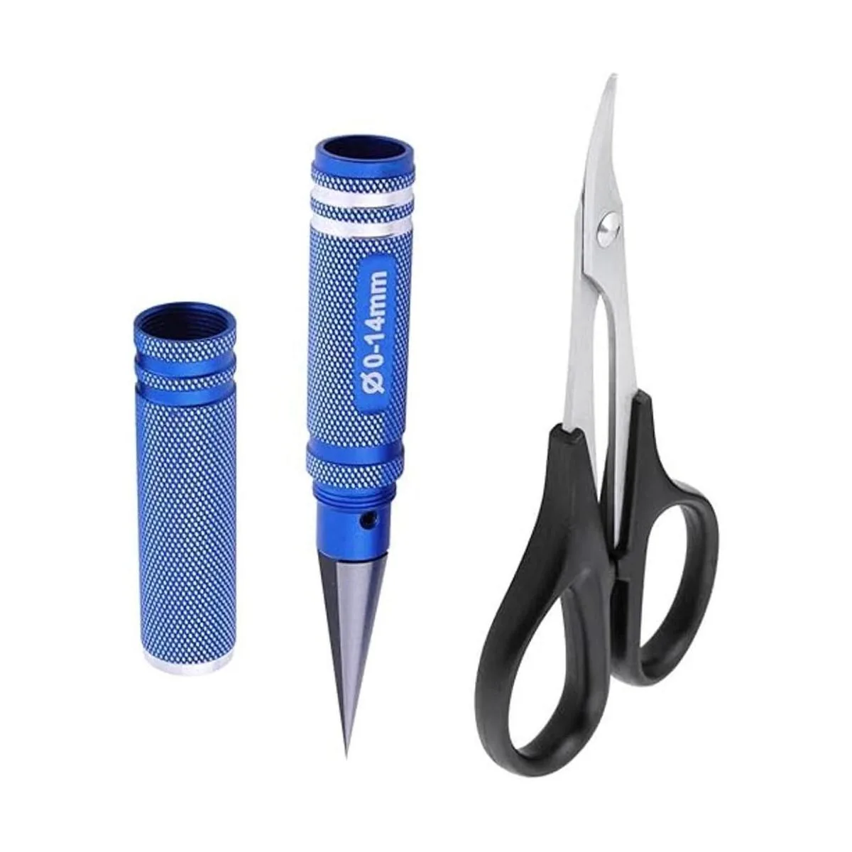 Hobbypark 0.0000.551 in perforador escariador con manga y tijeras curvas, herramienta universal para RC coche cuerpo Shell Lexan plástico con escariador azul