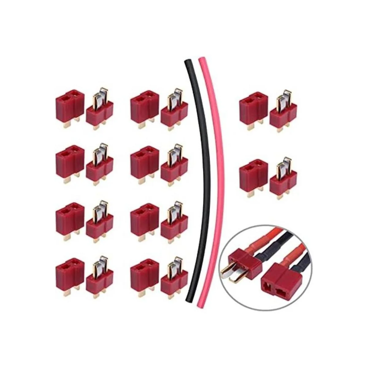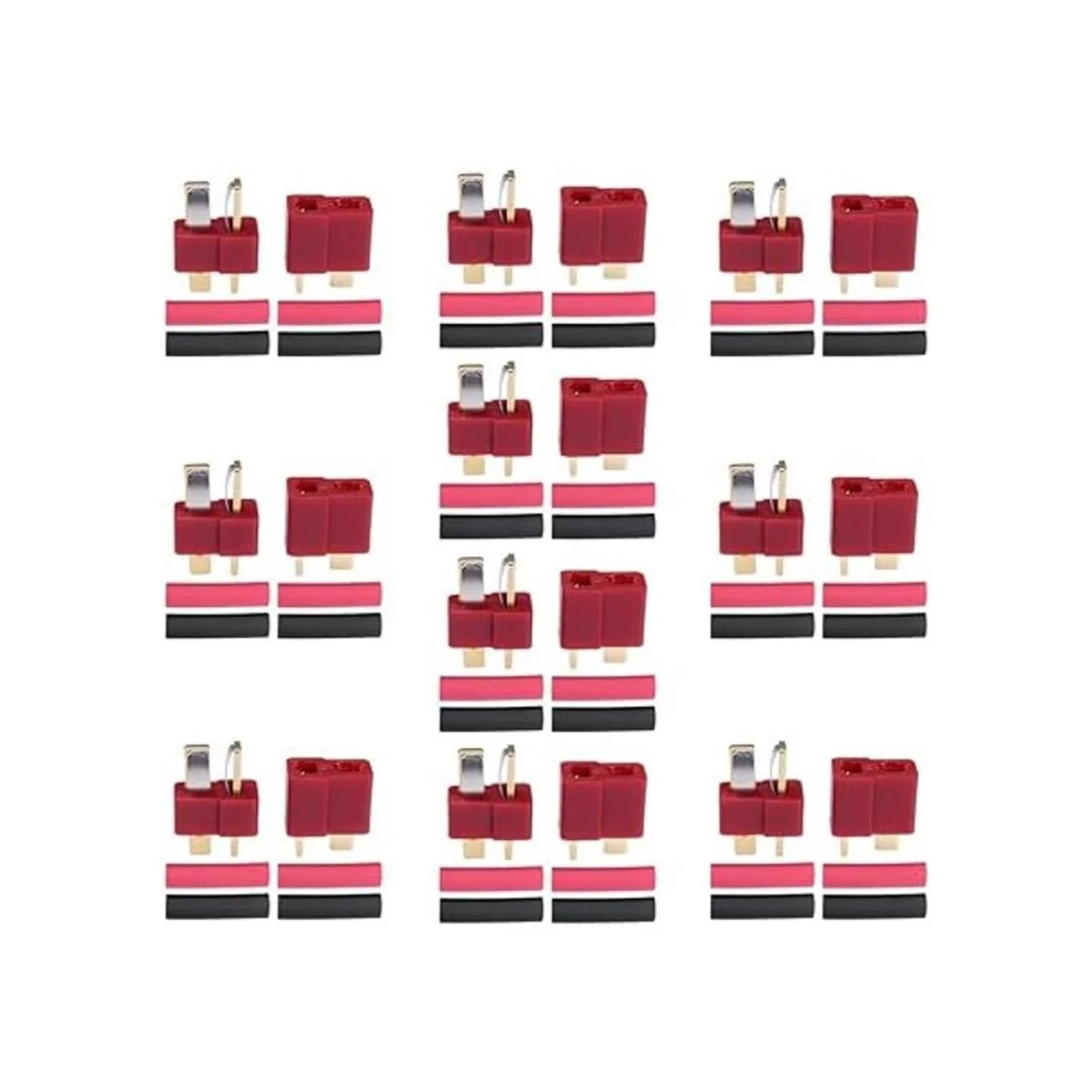 Hobbypark 10 pares de conectores en T macho y hembra estilo Deans con tubo retráctil para batería LiPo RC ESC, piezas de motor eléctrico