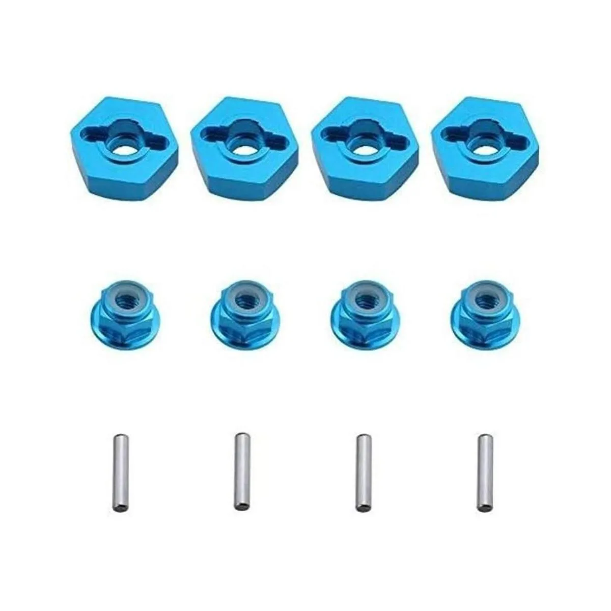 Hobbypark Adaptador de cubo de transmisión hexagonal de rueda de aluminio de 0.472 in 4P y tuercas de seguridad M4 4P Modelo RC piezas de automóvil color azul