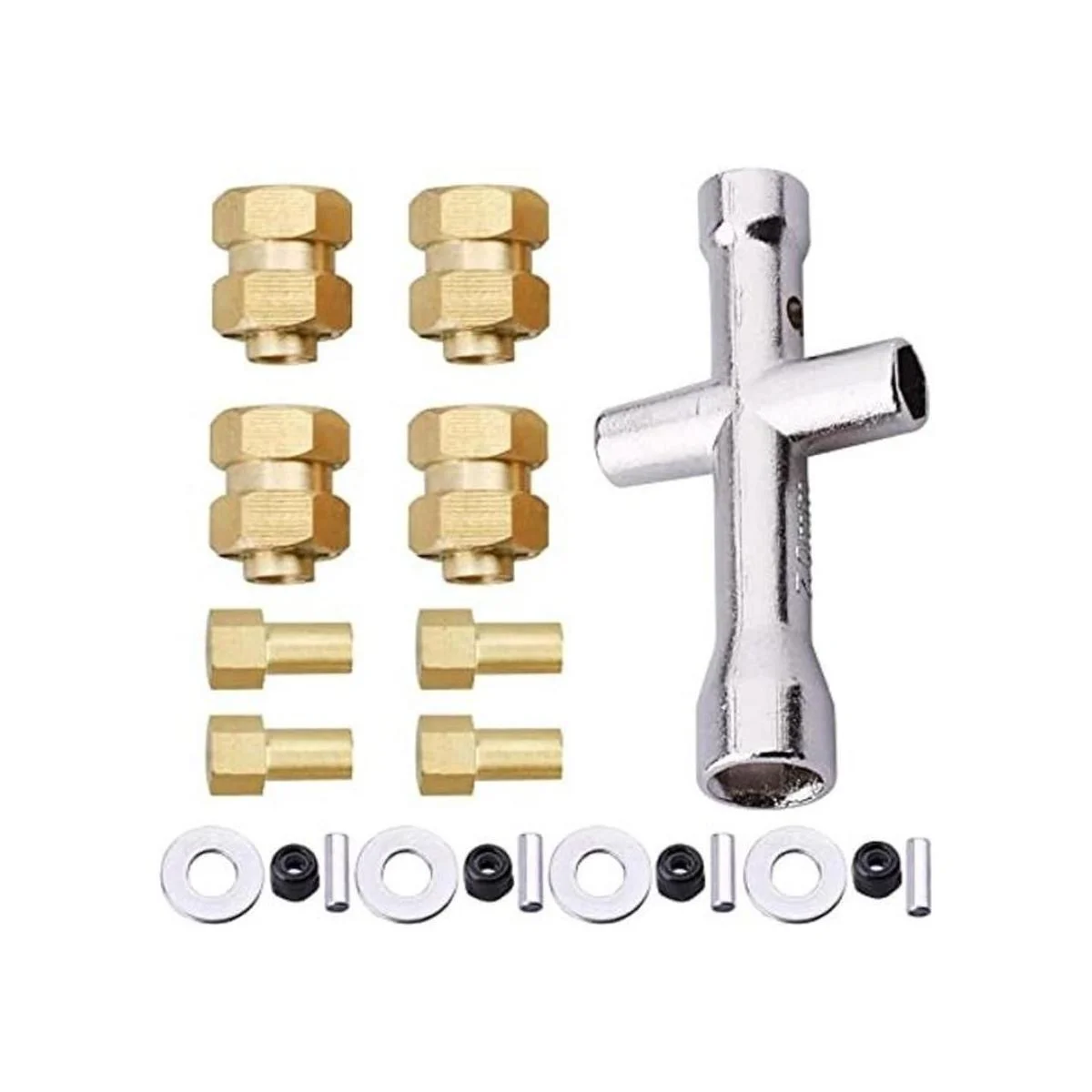 Valor de engranajes, el paquete incluye: hexagonal de rueda de latón extendido 4, pines 4 contratuercas 4, arandelas 4, clavos 4, llave de rueda 1 como se muestra