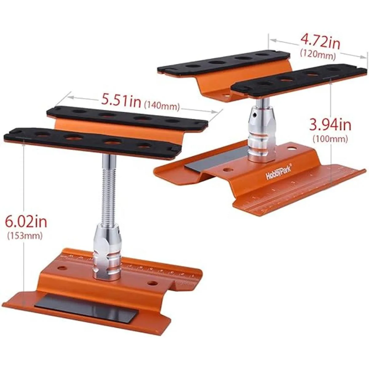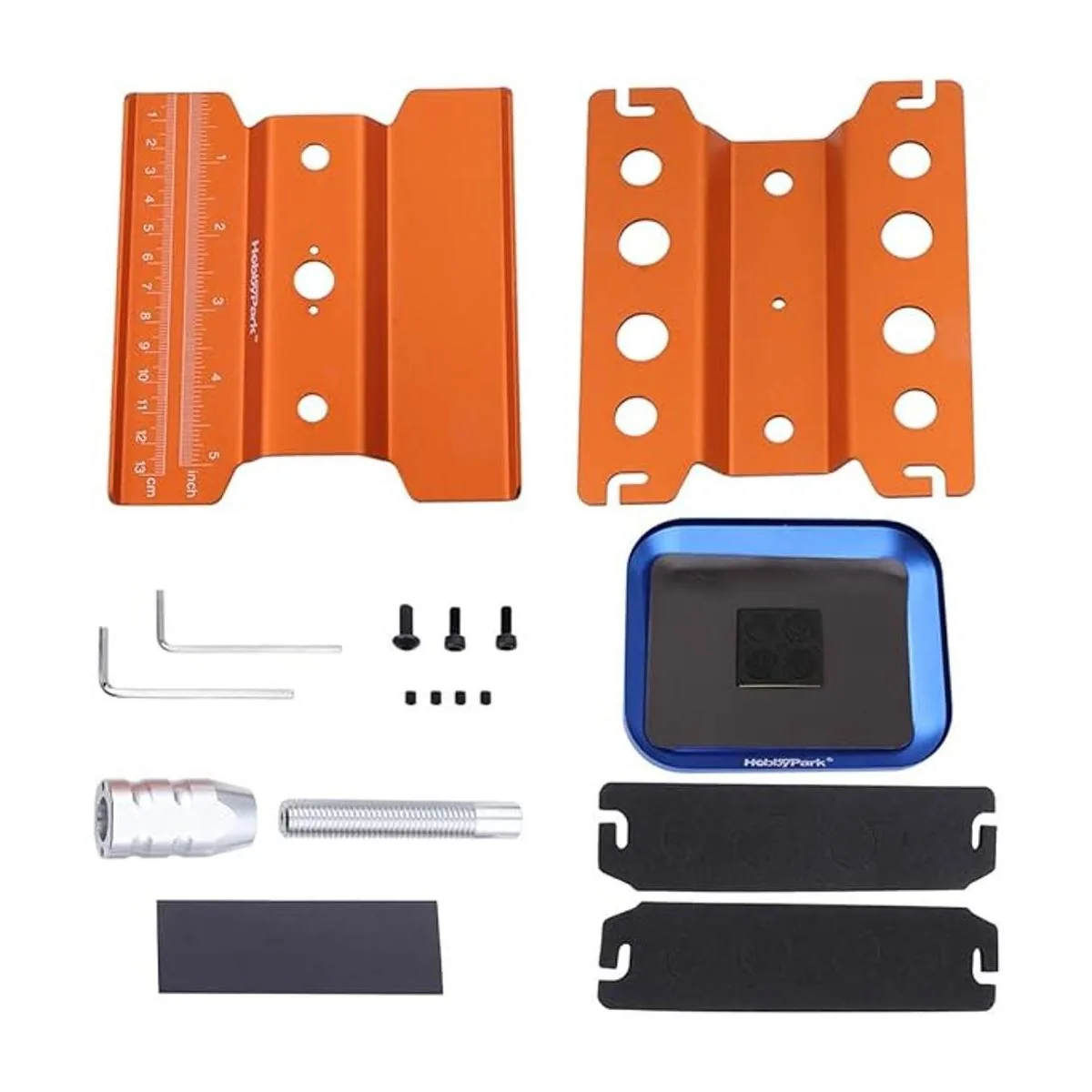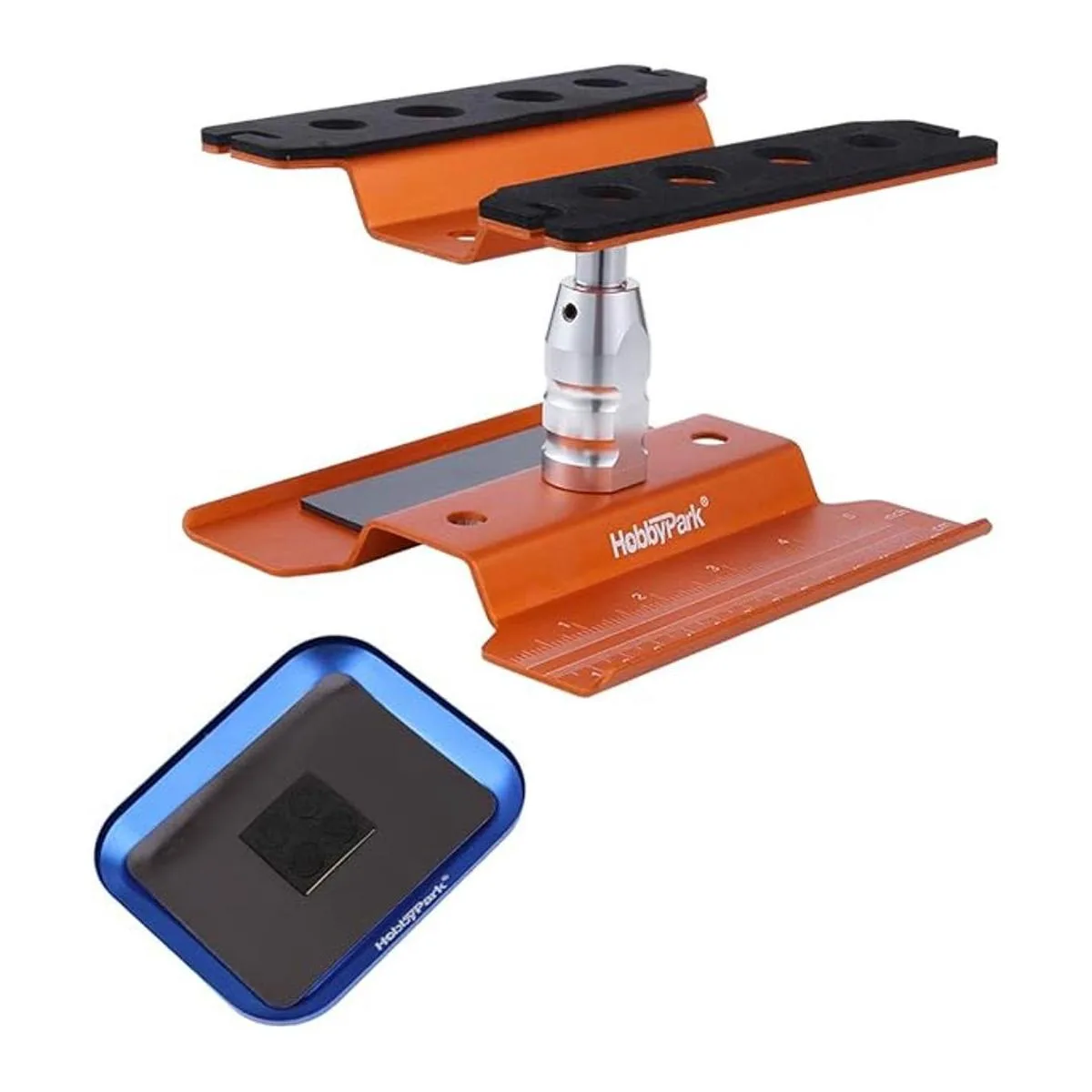 Hobbypark Estación de trabajo de aluminio para reparación de coches con control remoto, rotación de 360 grados, elevación o parte inferior con bandeja de tornillo para autos de escala 110, 112, 116