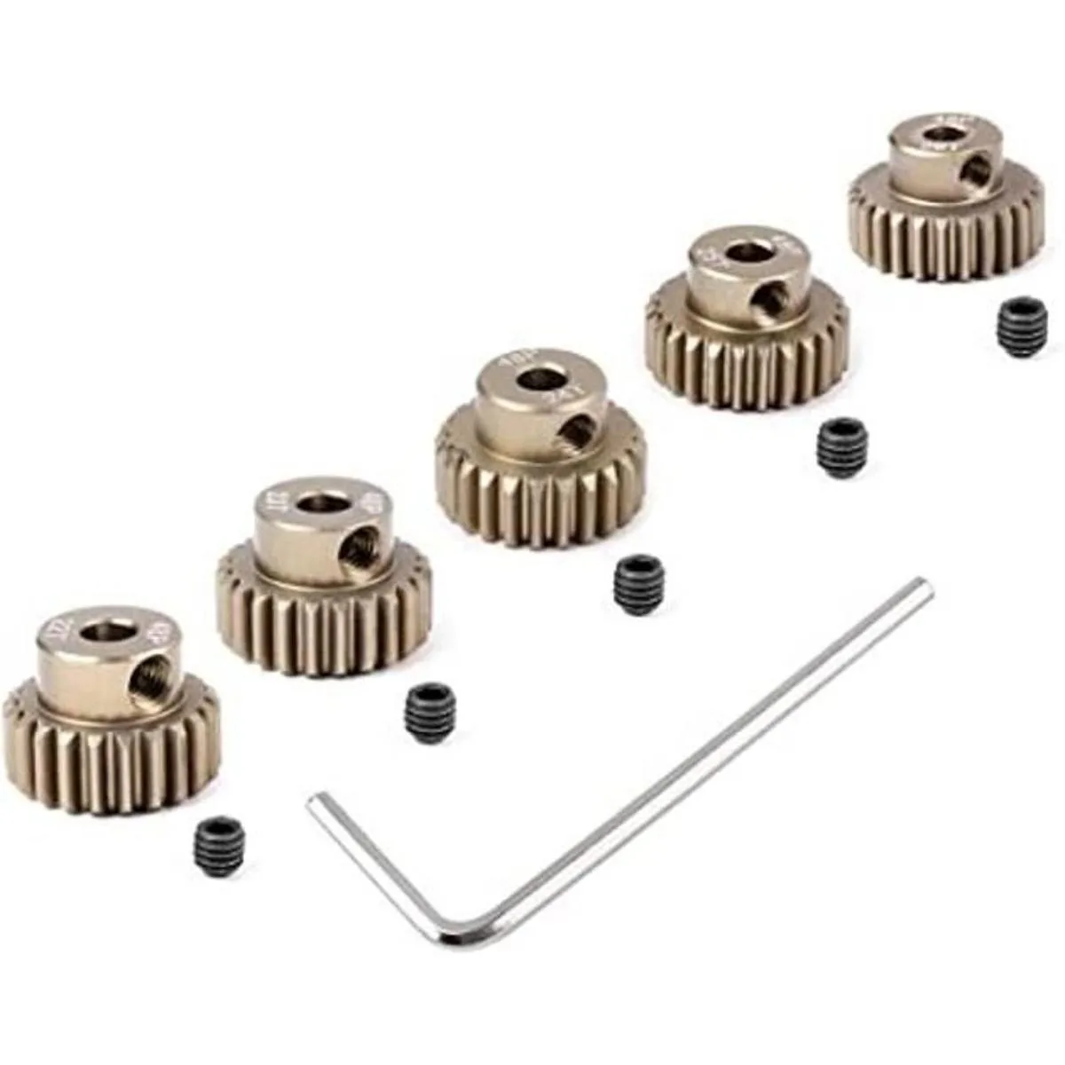 Hobbypark Metal 7075 aleación de aluminio 48P piñón engranaje conjunto 0.125 in agujero eje 22T 23T 24T 25T 26T motor engranajes kit para coche RC 5 unidades
