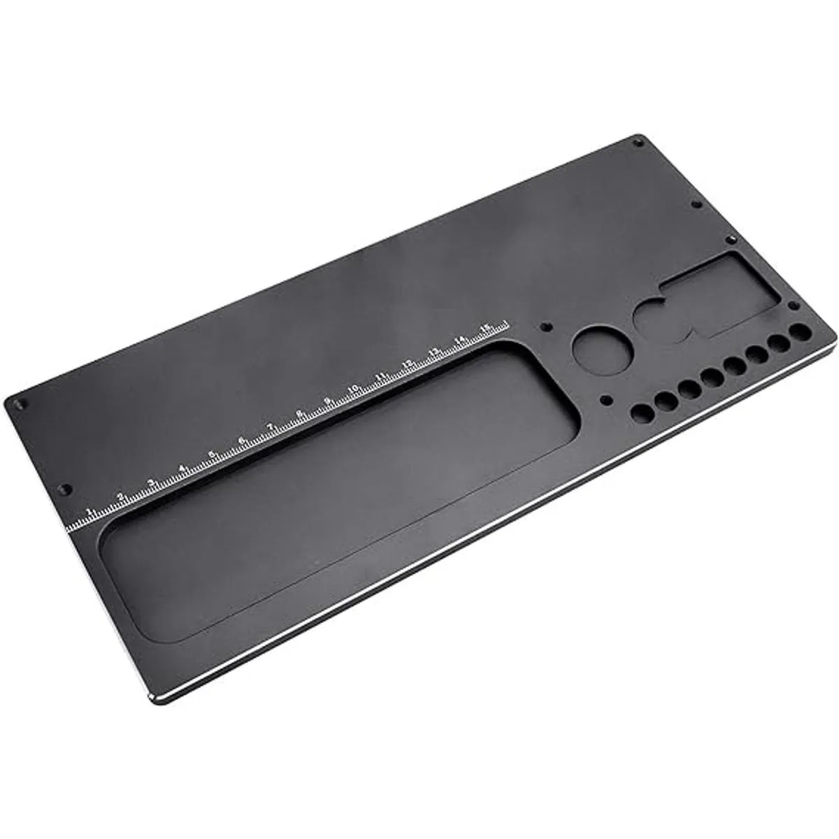 Varios agujeros para destornilladores o broca de destornillador de 1/4, amortiguadores de reconstrucción, escariador de cuerpo RC, etc. Bandeja de tornillos integrada, equipada con una tira magnética; con escala, puedes medir fácilmente la longitud de las piezas; equipada con espuma antideslizante, más estable.