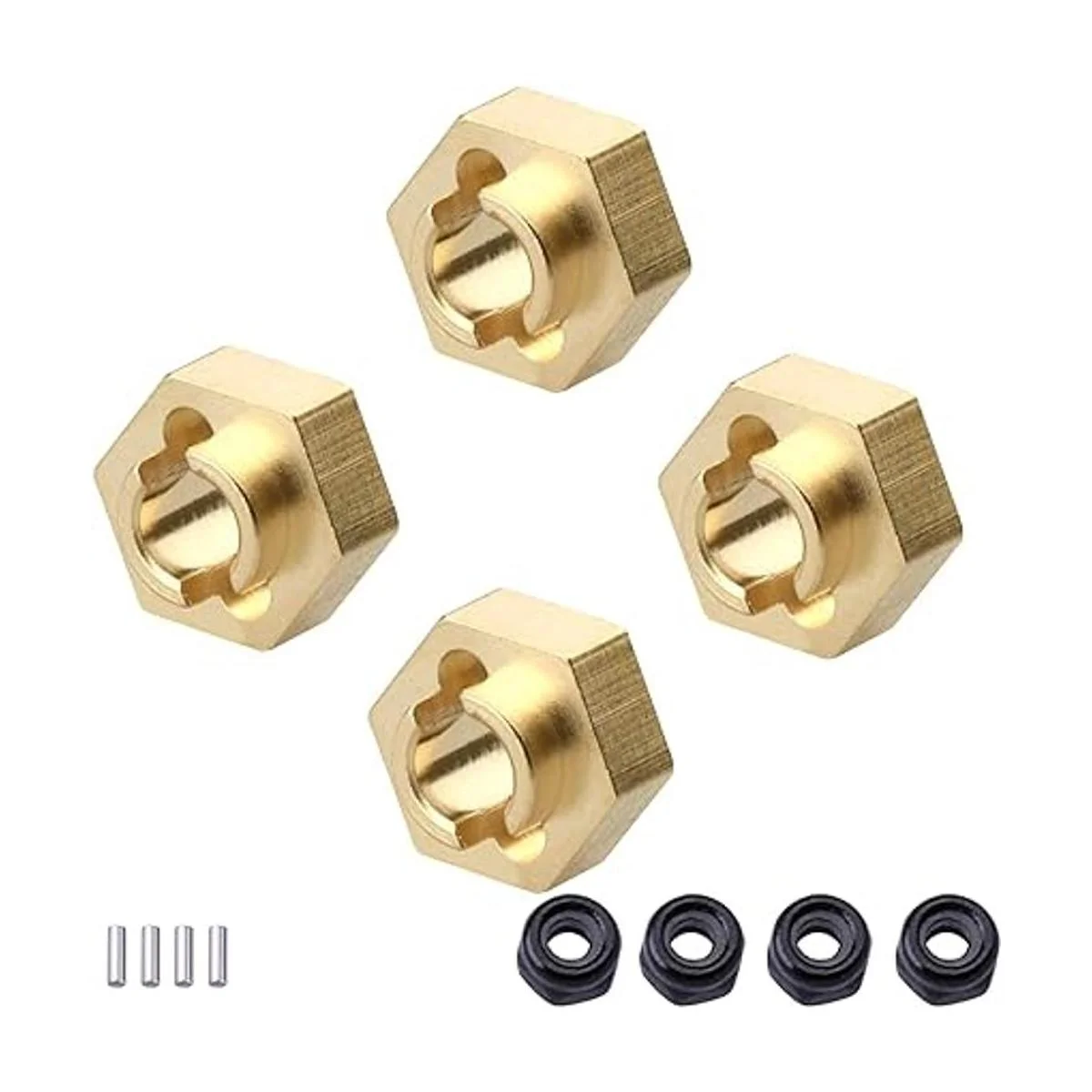 Hobbypark Ruedas hexagonales de latón 4 y tuercas de seguridad 4 para Axial SCX24 AXI90081 actualiza piezas 124 RC Crawler Car Truck
