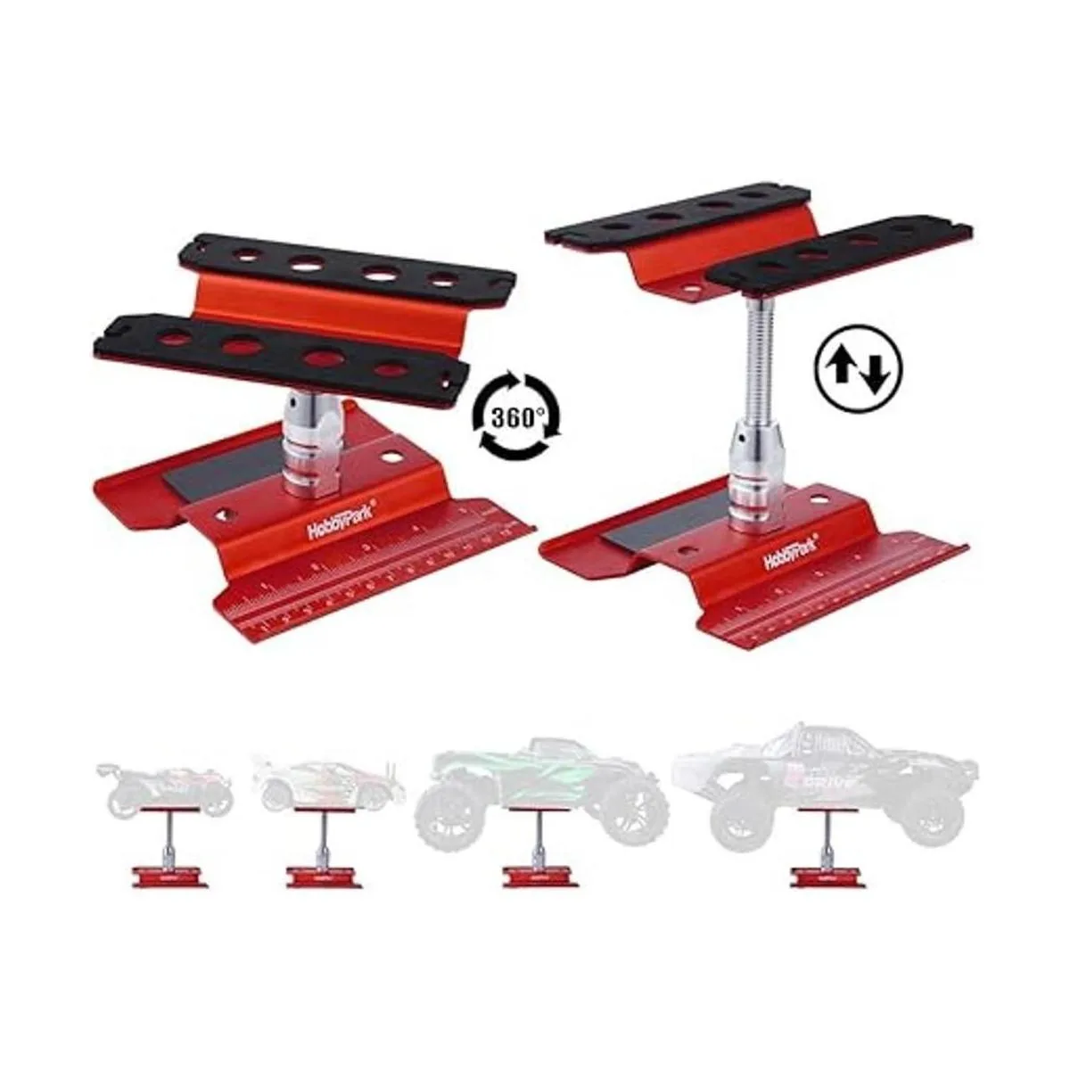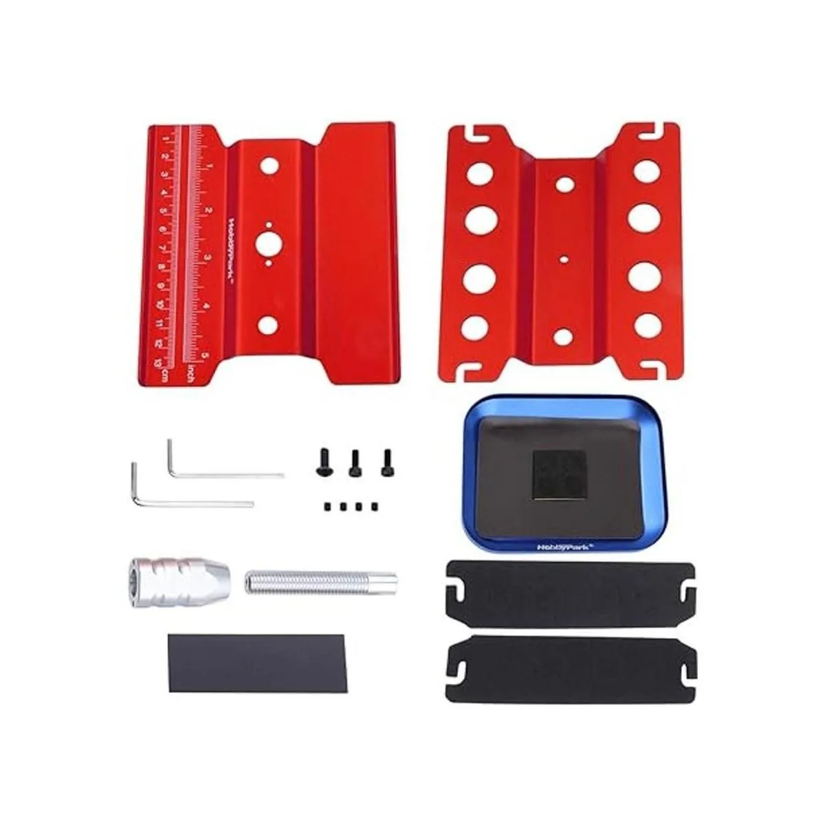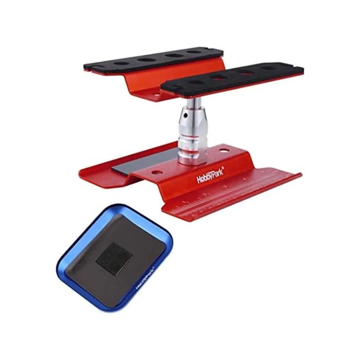 Hobbypark Soporte de aluminio para coche RC estación de trabajo, elevación o inferior, con bandeja de tornillo, herramientas de reparación para 110 112 116