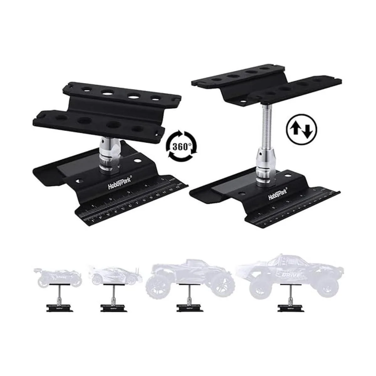 Hobbypark Soporte de trabajo para coche RC Estación de trabajo de aluminio de rotación de 360 grados inferior para 110 112 116 118 Buggy en carretera Touring Drift negro