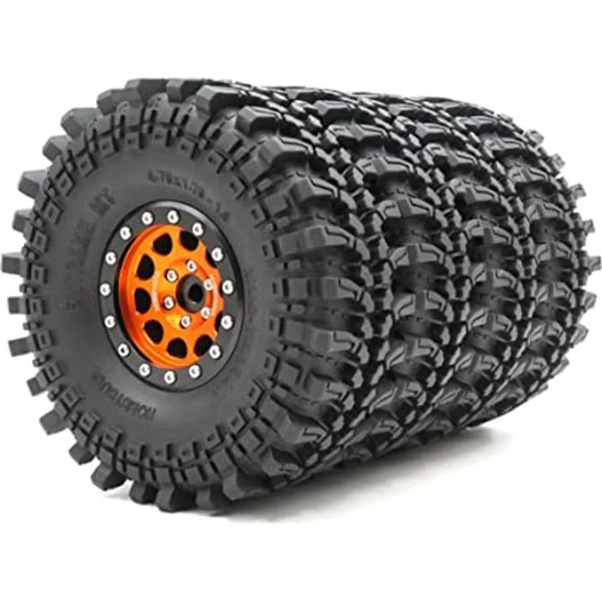 Material: ruedas Beadlock de aluminio goma butílica es mejor que la goma común, buena resistencia al calor y buena resistencia al frío. Diseño para rastreador RC profesional