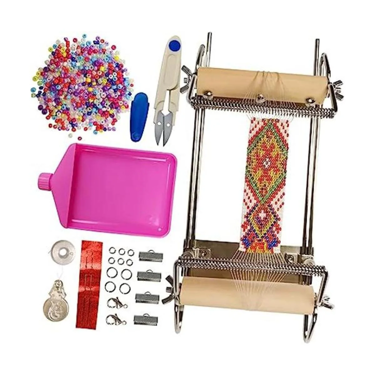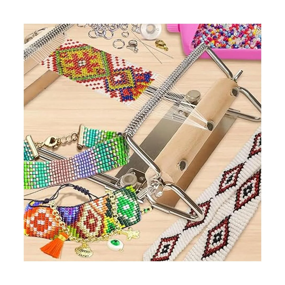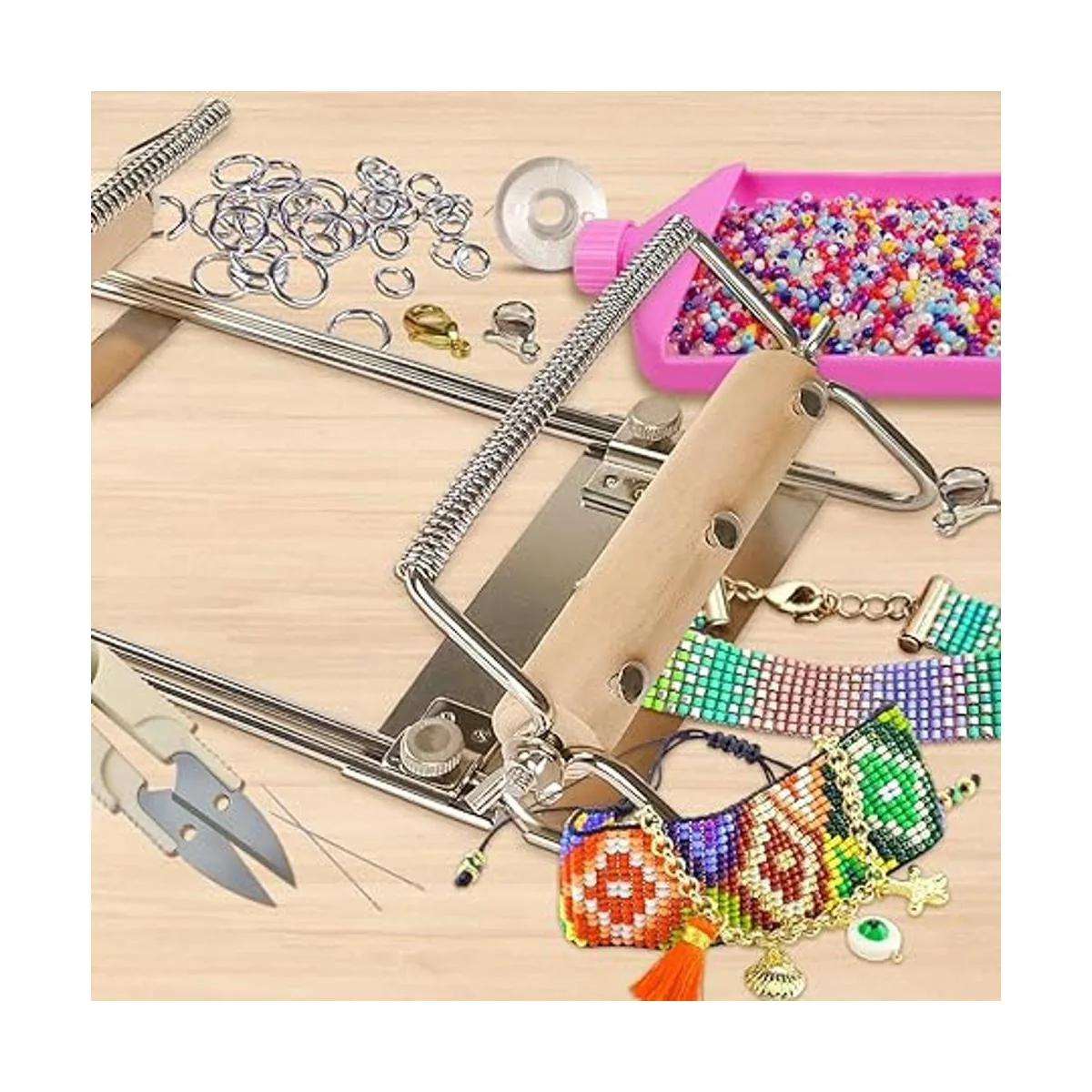 hobbyworker Kit de telar de cuentas ajustables de segunda generación con cuentas de semillas, aguja de cuentas curvadas de ojos grandes, bandeja de embudo de cuentas, cierre de langosta, anillo abierto y alfombrilla de cuentas para kit de fabricación de joyas