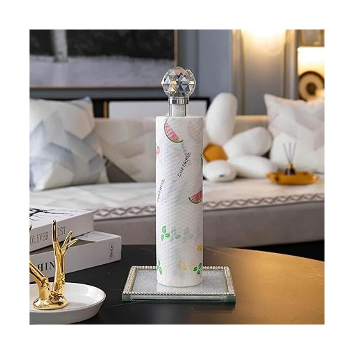 Características: Este es un impresionante soporte de papel llamativo, pero práctico. Puede sostener bien cualquier toalla de cocina/rollo. Una pieza total que es perfecta para entretener. La cúpula de cristal en la parte superior está llena de cristales brillantes y la base es un poco más ancha que otras, fácil de rasgar papel con una sola mano. La tapa de extremo grande puede evitar que el soporte de papel salte al romper.