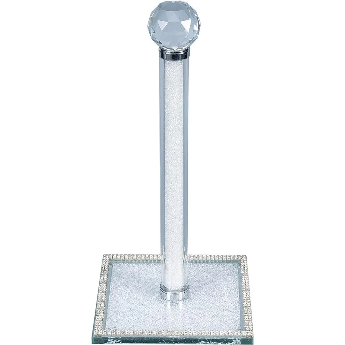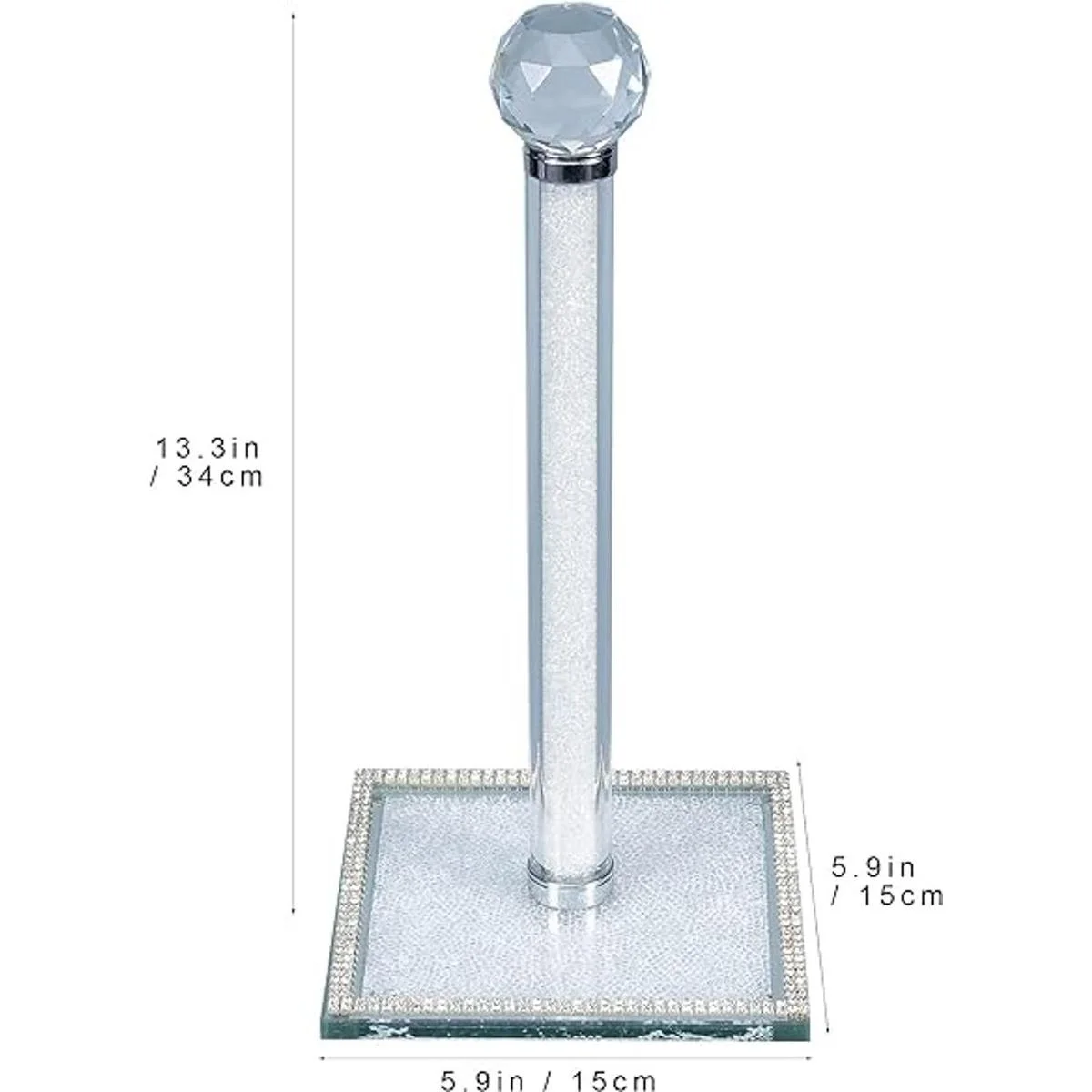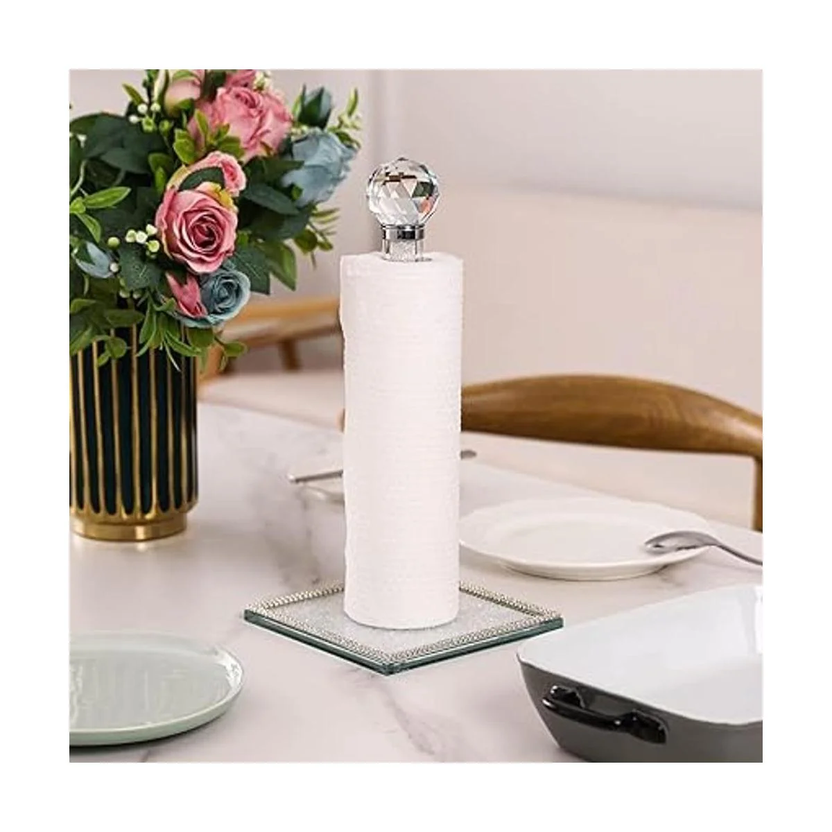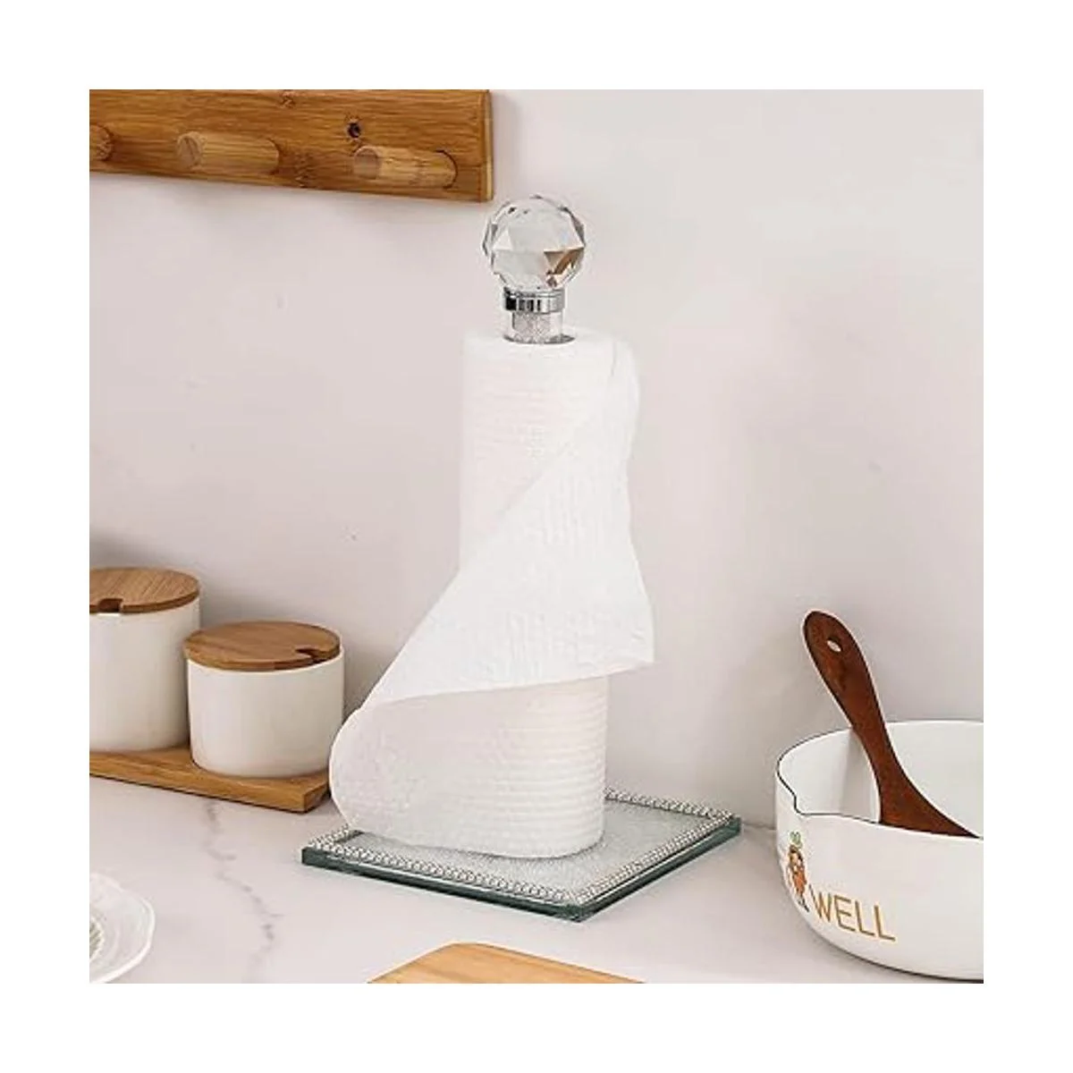 Hochance Toallero de papel de cristal transparente, soporte con peso para encimera, bonito y glamoroso, diamantes de imitación brillantes, decoración moderna, regalos de inauguración de la casa para cocina, hogar, bar