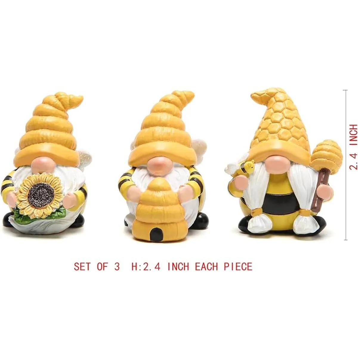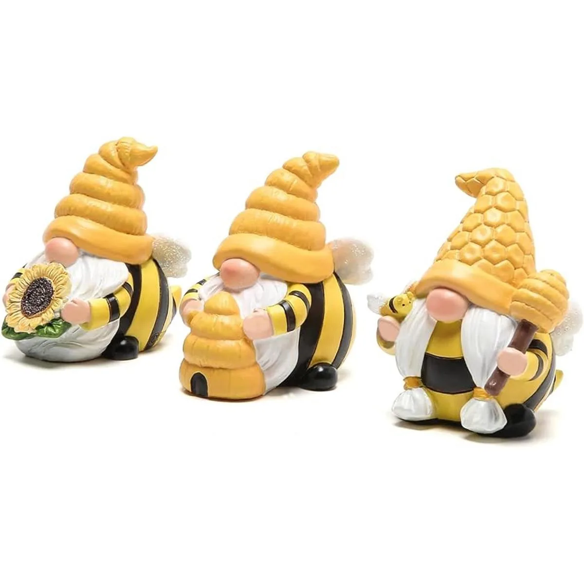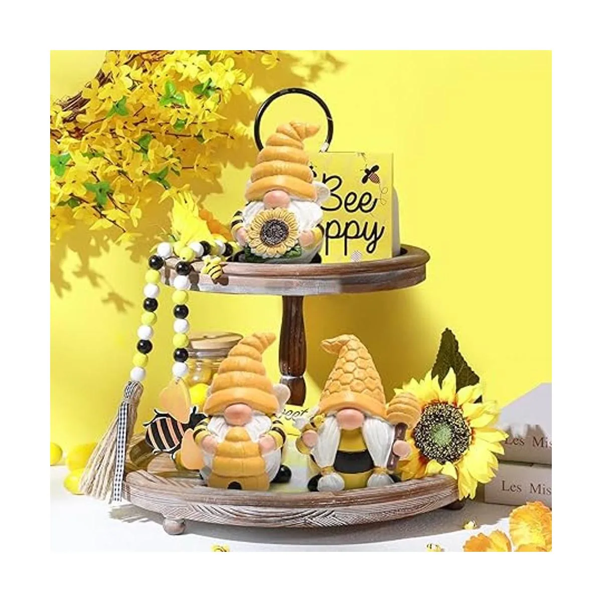 Hodao 3 piezas de decoración de gnomos de primavera de abejorro de abejorro, adornos de gnomos de abeja de miel, decoraciones del día mundial de la abeja, regalos de otoño, figuras de gnomos de Acción de Gracias, decoración de abejas de miel, decoraciones de fiesta de cumpleaños
