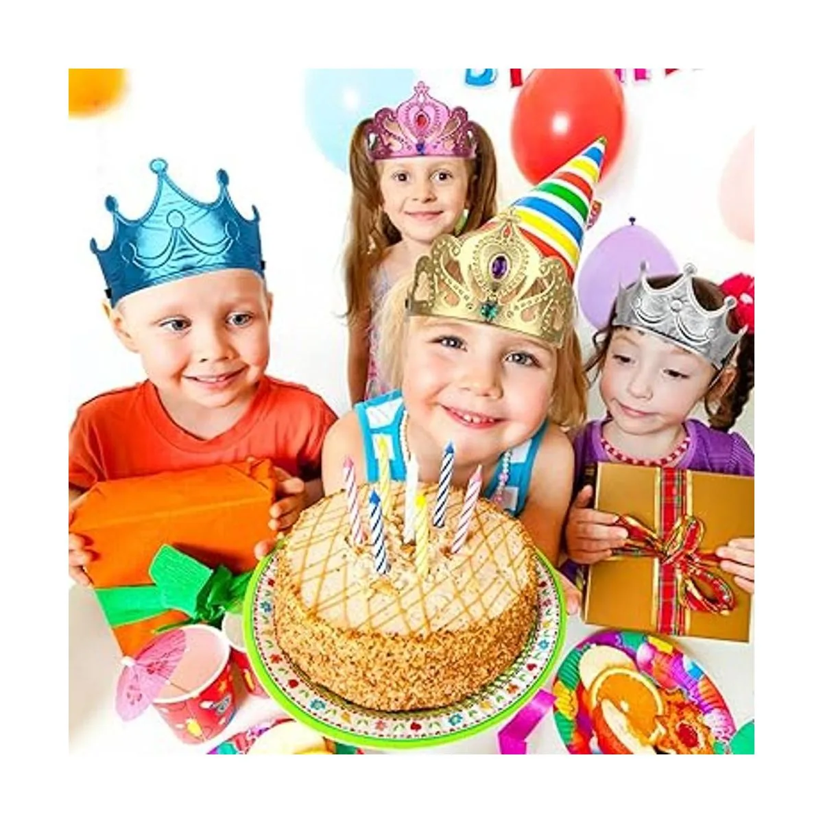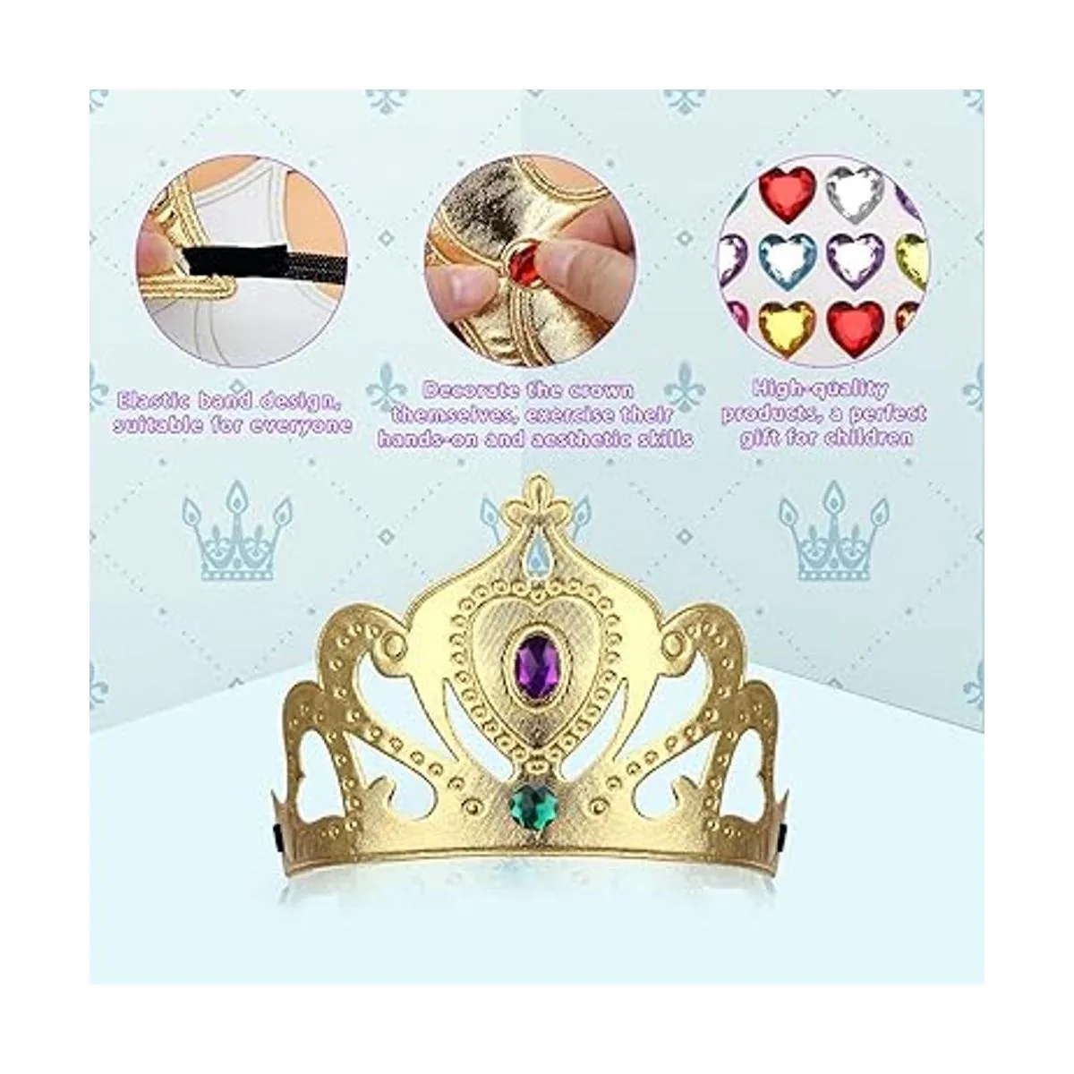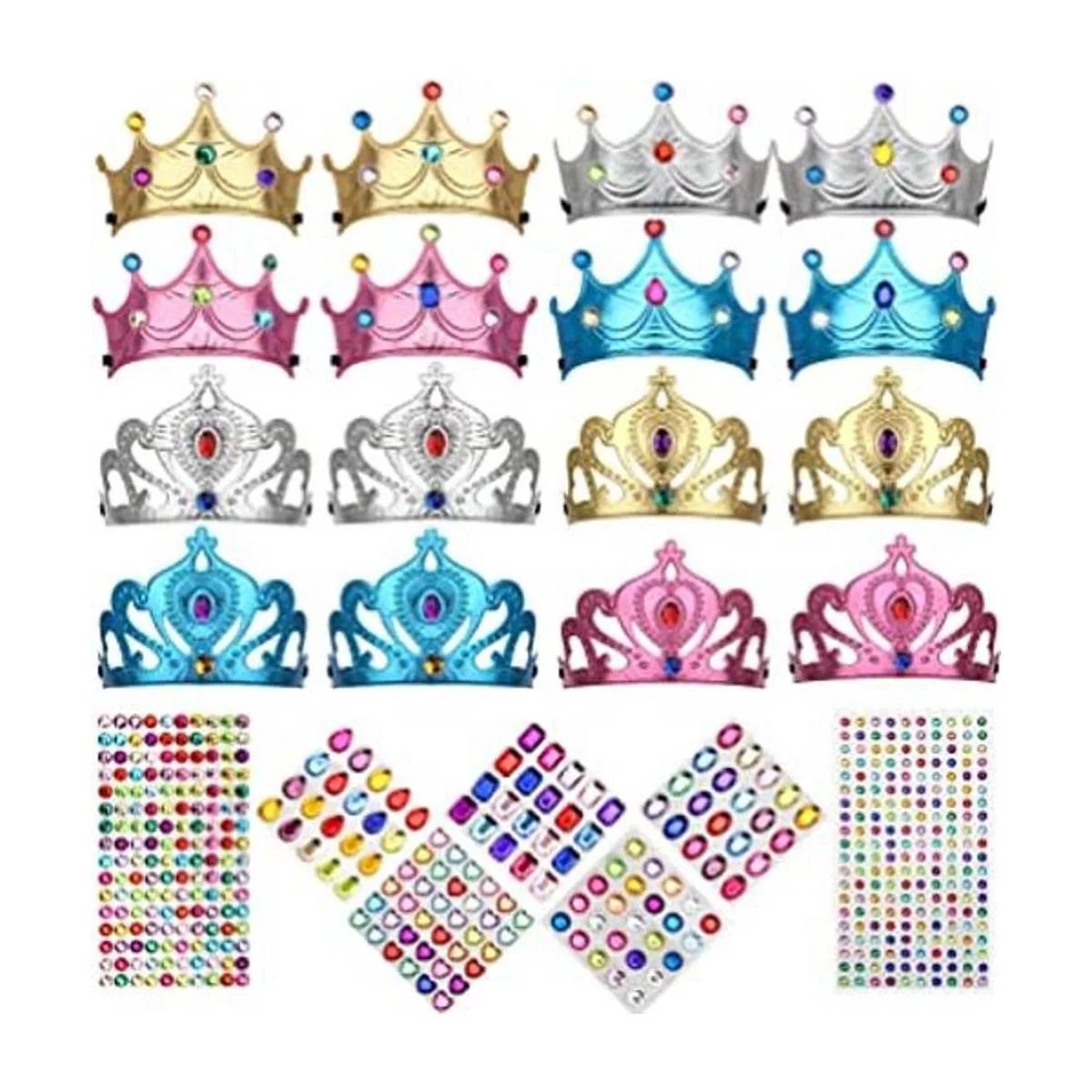 Hoedia 16 coronas y tiaras de espuma de princesa para regalos de fiesta de cumpleaños, kit de corona de príncipe de bricolaje, tiara de papel con adhesivo de diamante de cristal, coronas de princesa y rey