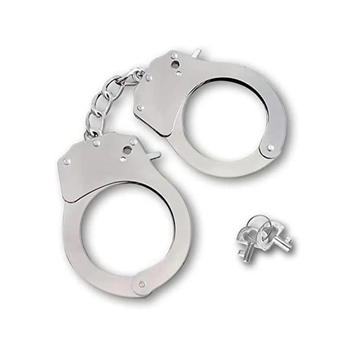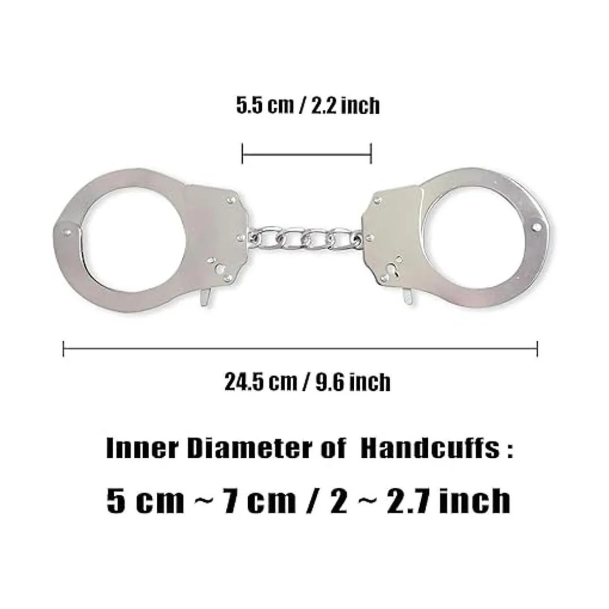 HOHAJIU Esposas de juguete con llaves, esposas de metal, suministros de fiesta, accesorios para escenario, fiesta, esposas de juego para niños plateado