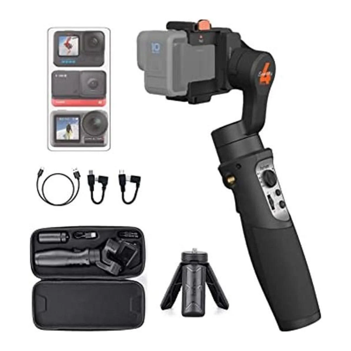 Gran compatibilidad: iSteady Pro 4 es compatible con GoPro Hero 10/9/8/7/6/5/4/3, DJI OSMO Action, Insta360 ONE R 4K y 1 pulgada y otras cámaras de acción con tamaño similar. Nota: no funciona para GoPro Hero 7 White and Silver Models. Y para DJI OSMO Action, Insta360 ONE R, iSteady Pro 4 solo puede estabilizar esas dos cámaras de acción, no puede controlarlas para tomar fotos o iniciar o detener la filmación